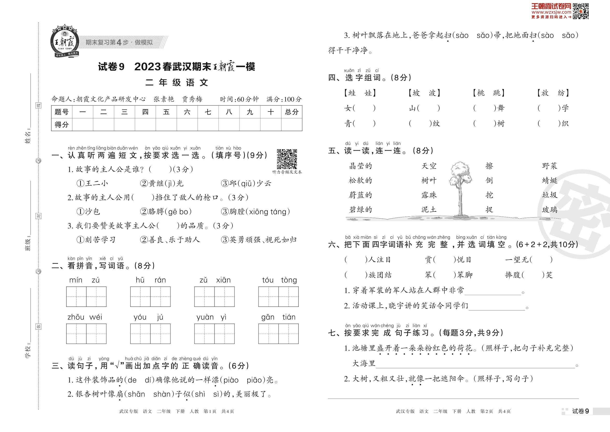 王朝霞期末模拟卷二年级下册语文(人教版)_R230420163035539【9】