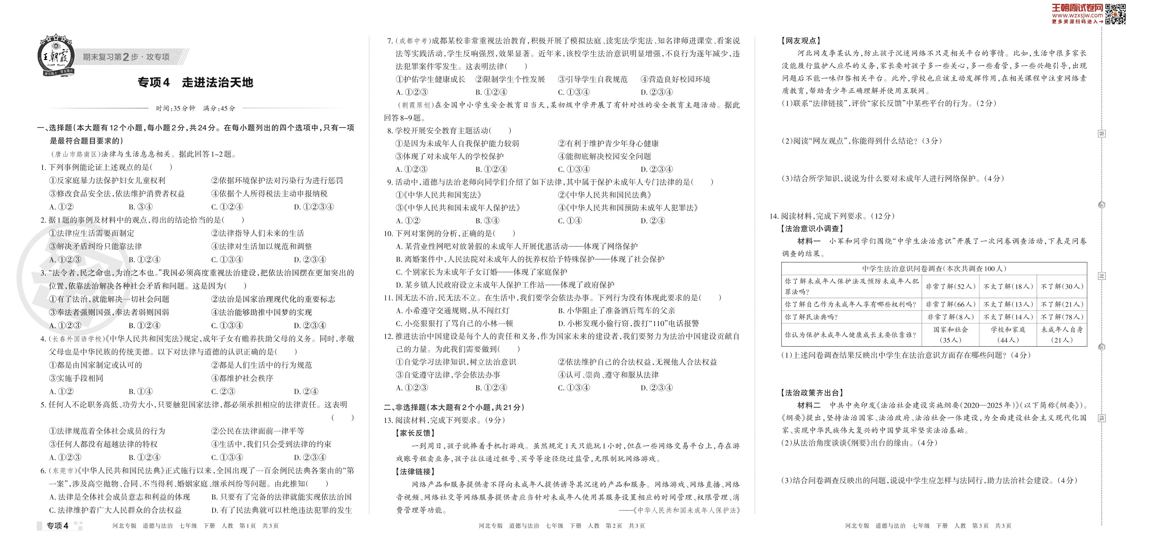 王朝霞期末专项卷——走进法治天地七年级下册道德与法治(人教版)_R230420163347871【4】