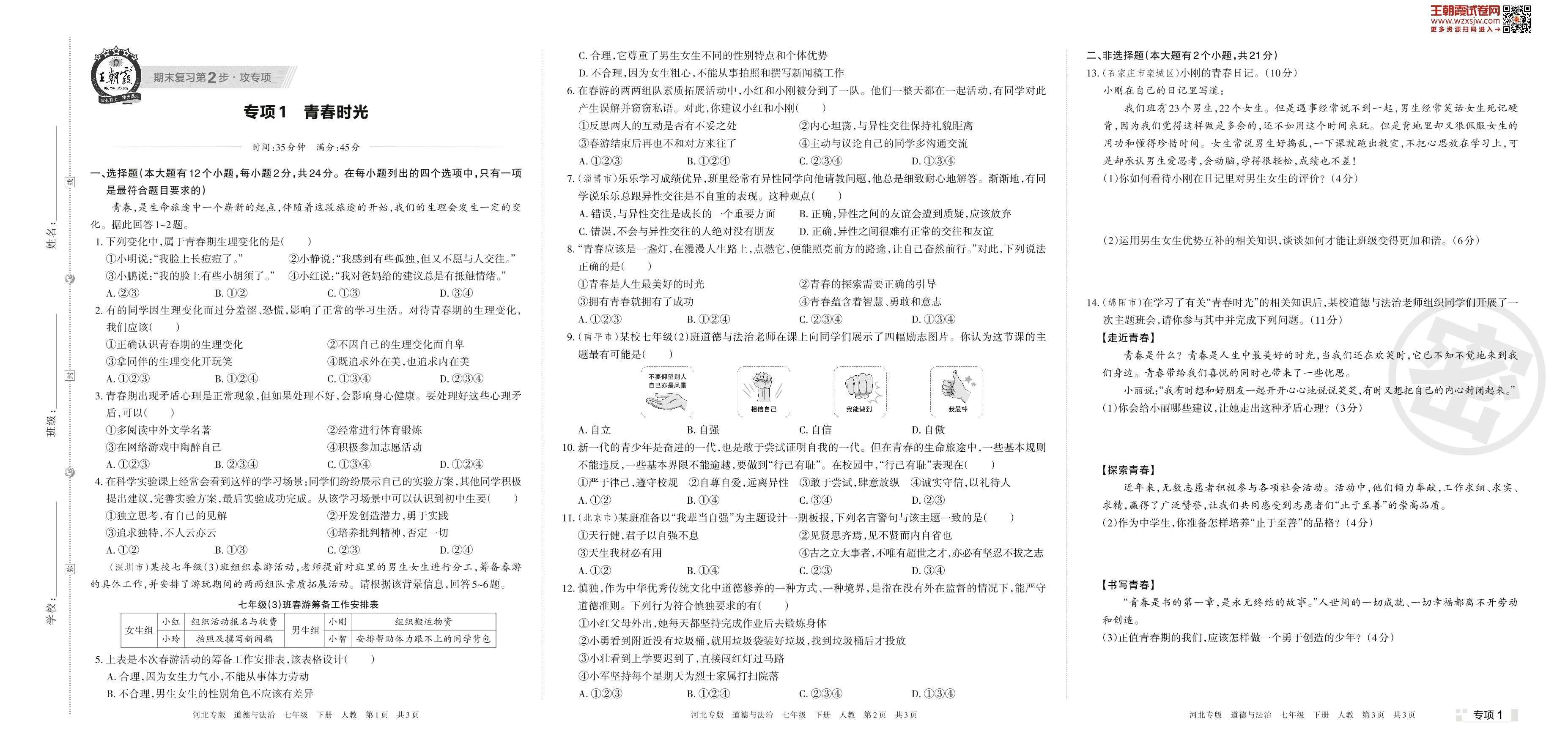 王朝霞期末专项卷——青春时光七年级下册道德与法治(人教版)_R230420163347377【1】