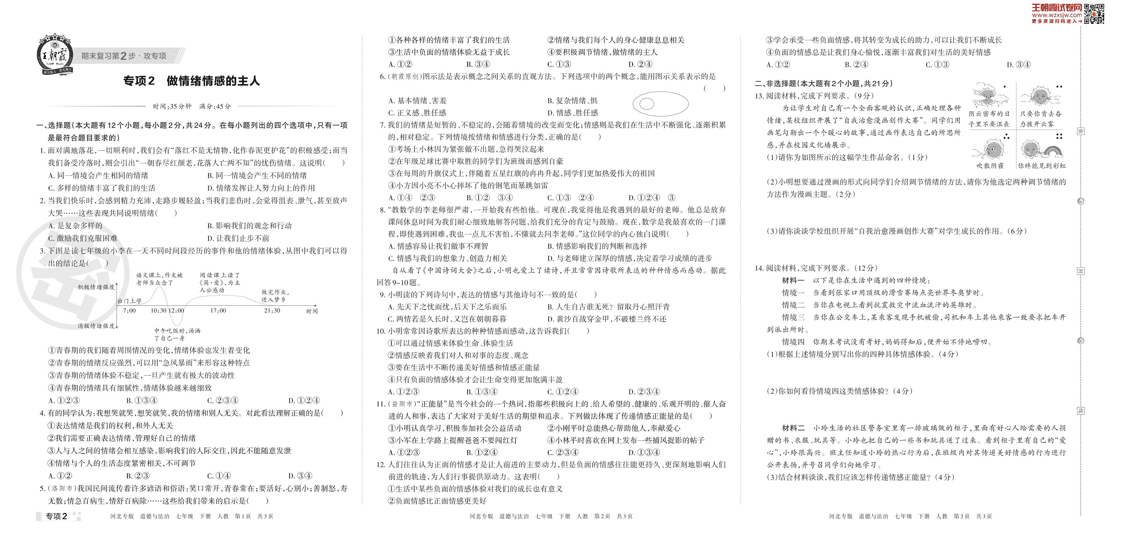 王朝霞期末专项卷——做情绪的主人七年级下册道德与法治(人教版)【2】