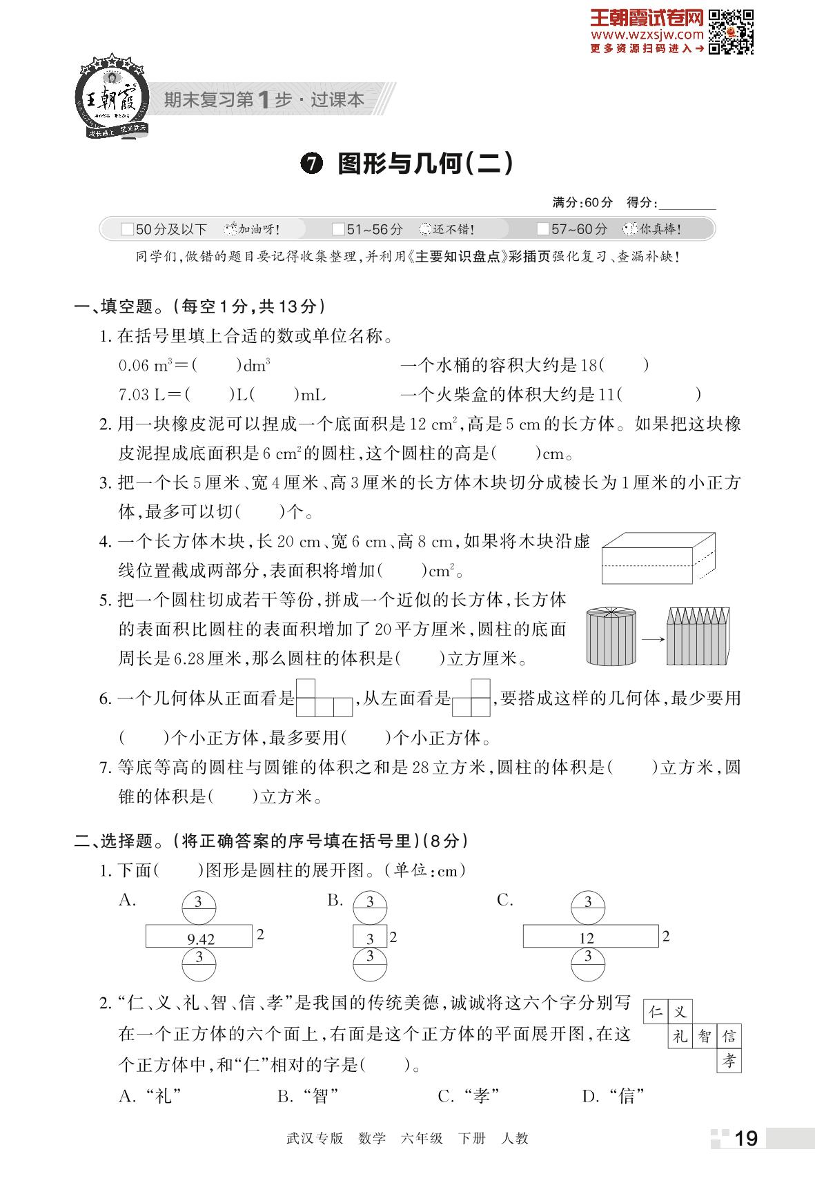 王朝霞期末过课本——7 图形与几何(二)六年级下册数学(人教版)_R230420164514151