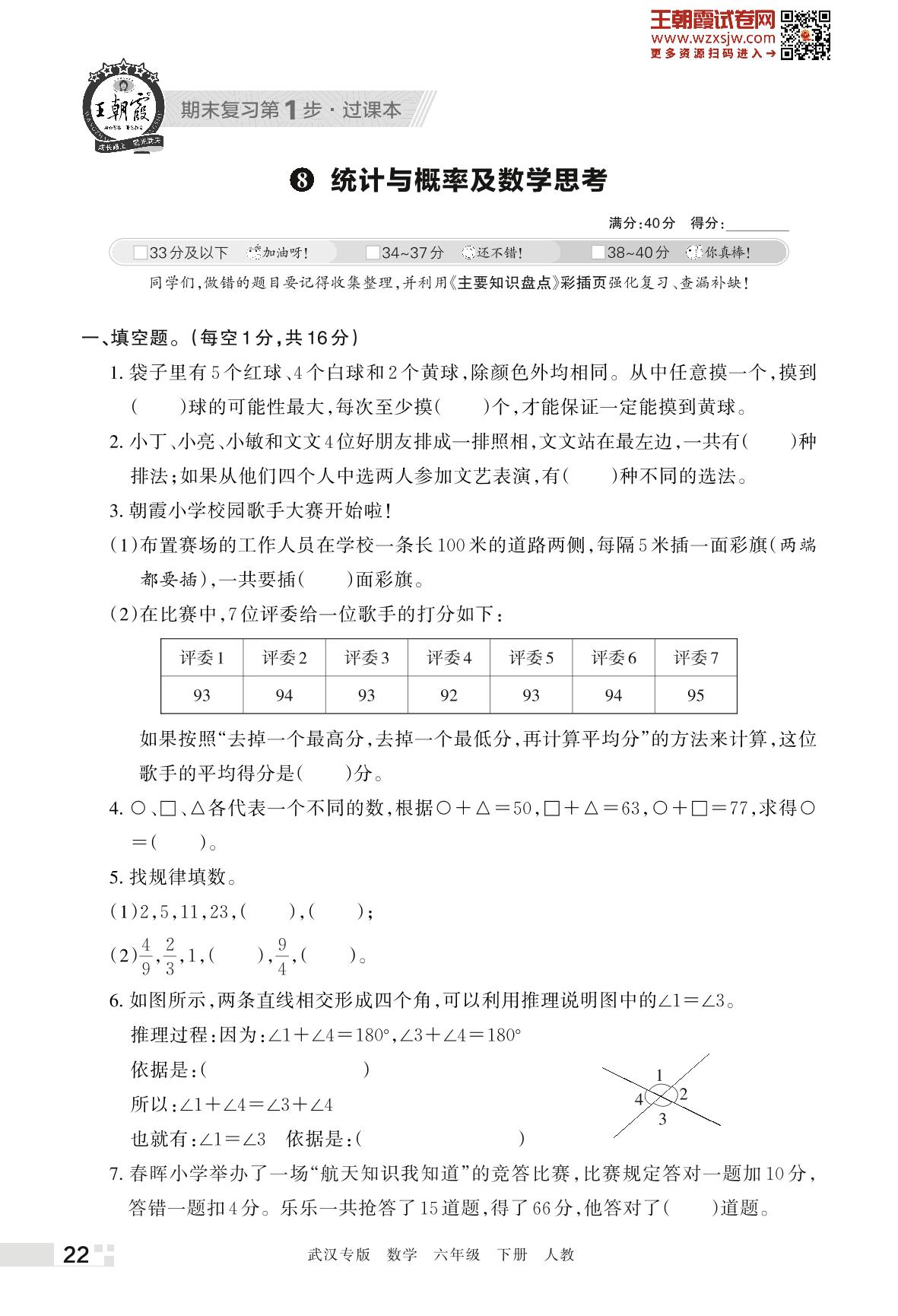 王朝霞期末过课本——8 统计与概率及数学思考六年级下册数学(人教版)_R230420164514707