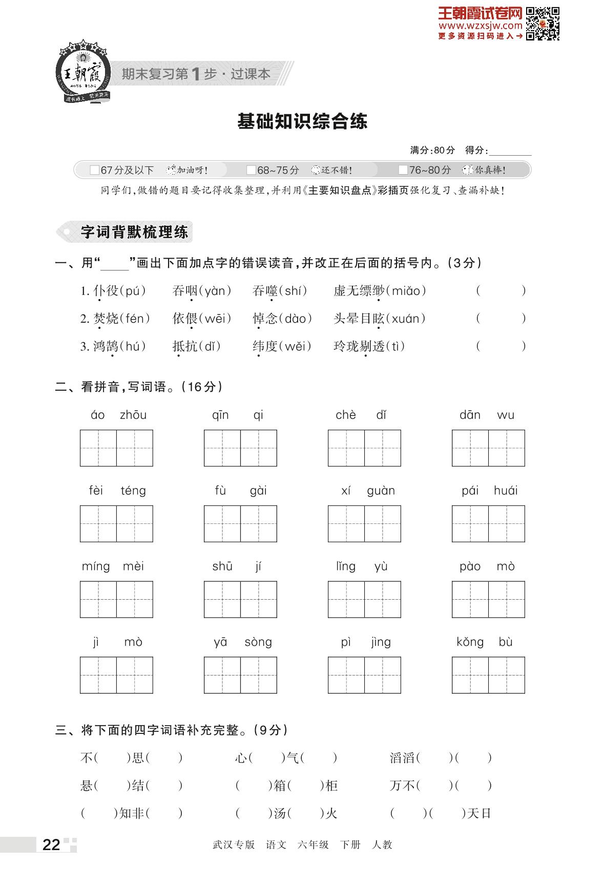 王朝霞期末过课本——基础知识综合练六年级下册语文(人教版)_R230420165736217