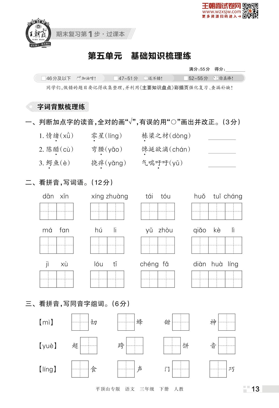 王朝霞期末过课本——第五单元 基础知识梳理练三年级下册语文(人教版)_R230420170308160
