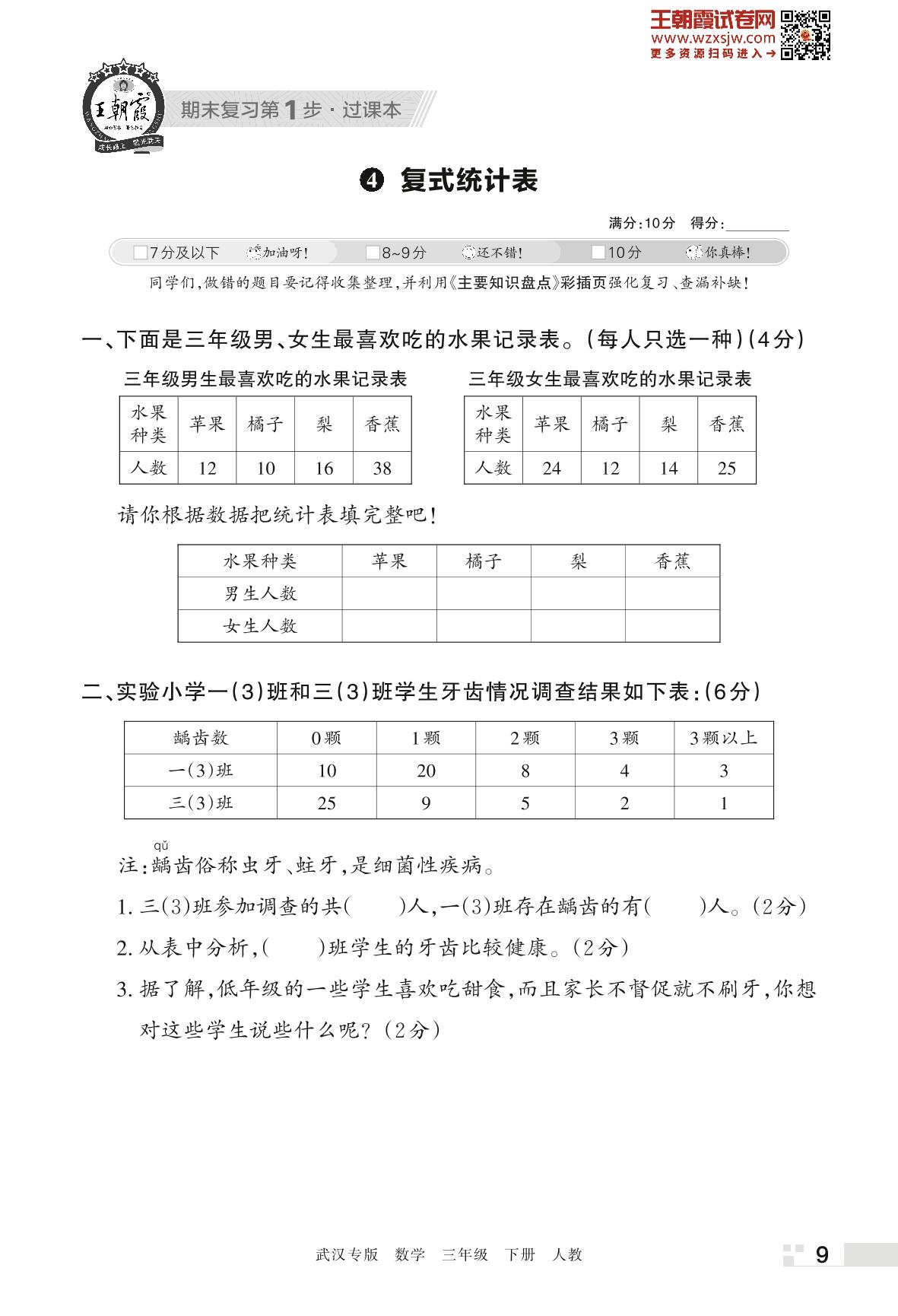 王朝霞期末过课本——4 复式统计表三年级下册数学(人教版)_R230420170707194