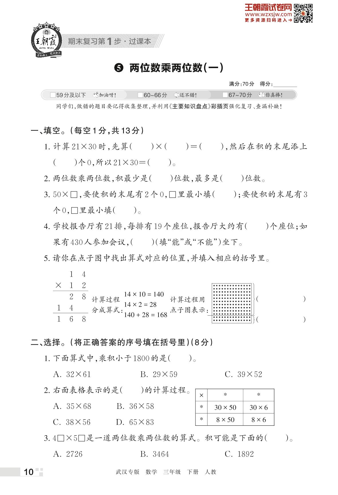王朝霞期末过课本——5 两位数乘两位数(一)三年级下册数学(人教版)_R230420170708043
