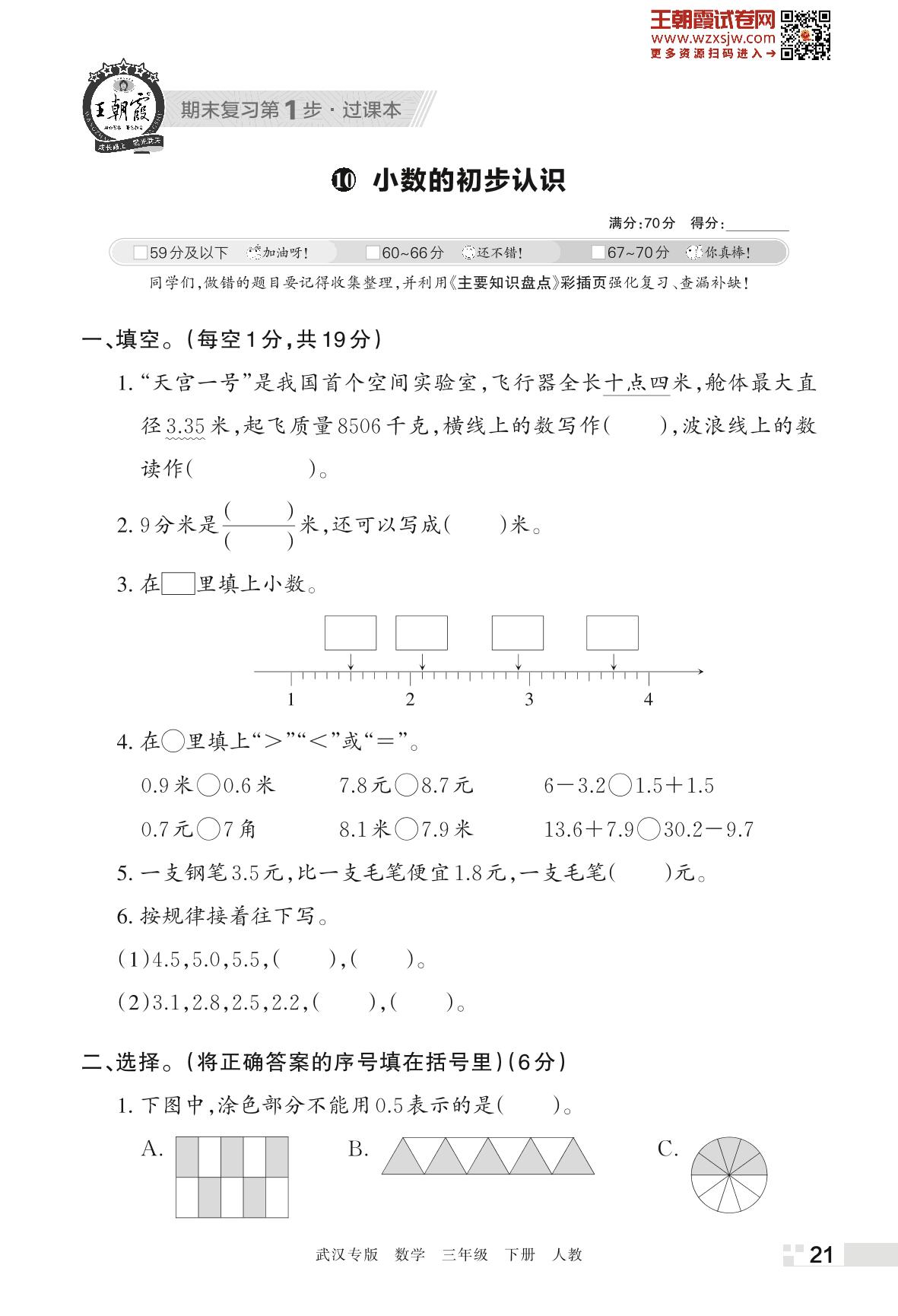 王朝霞期末过课本——10 小数的初步认识三年级下册数学(人教版)_R230420170708799