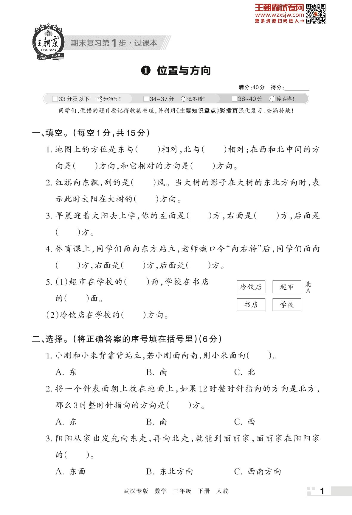 王朝霞期末过课本——1 位置与方向三年级下册数学(人教版)_R230420170709119