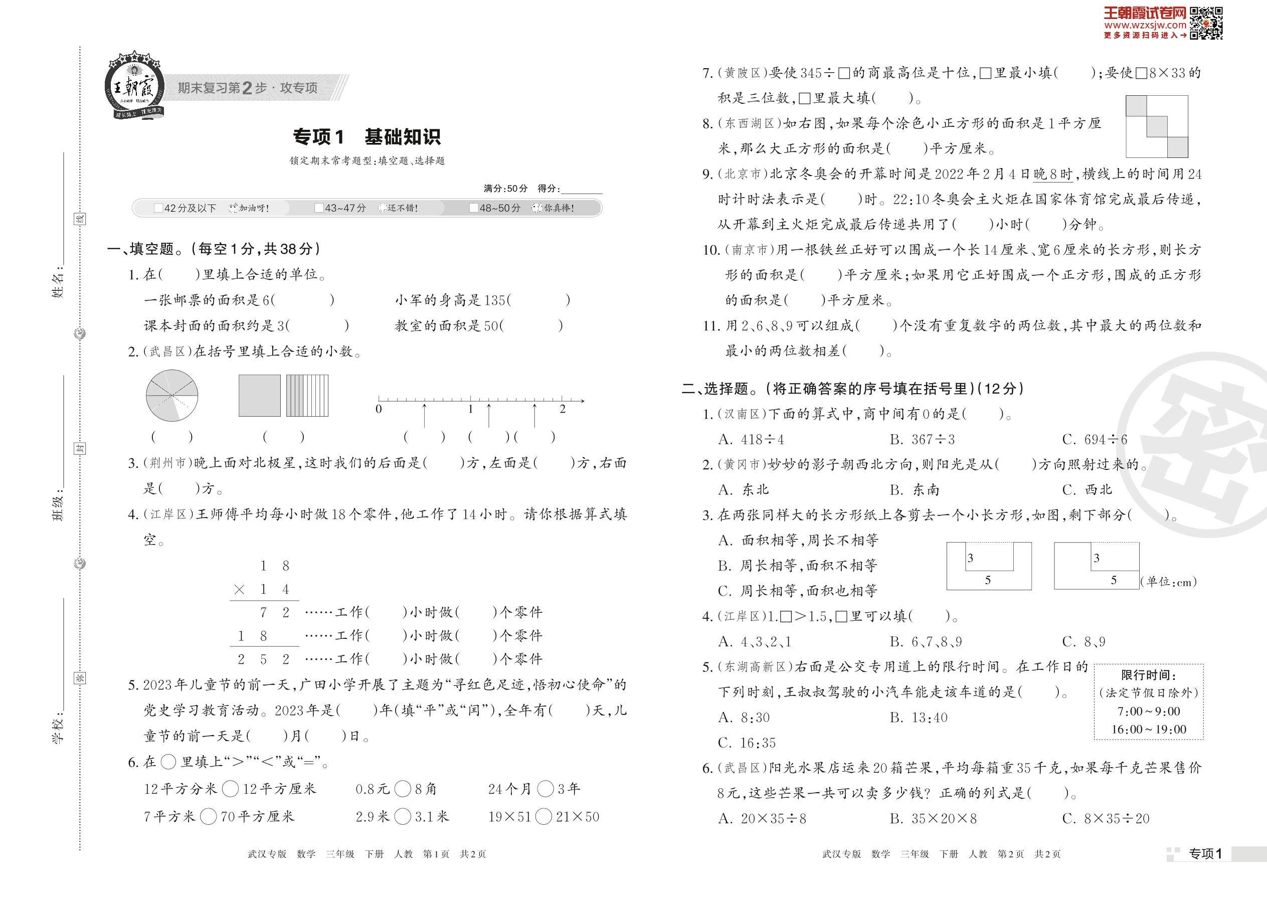 王朝霞期末专项卷——基础知识三年级下册数学(人教版)_R230420170710299【1】