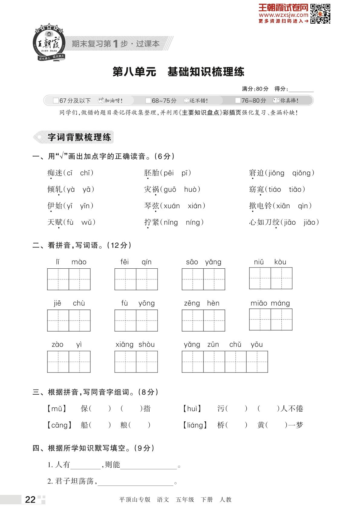 王朝霞期末过课本——第八单元 基础知识梳理练五年级下册语文(人教版)_R230420171552365