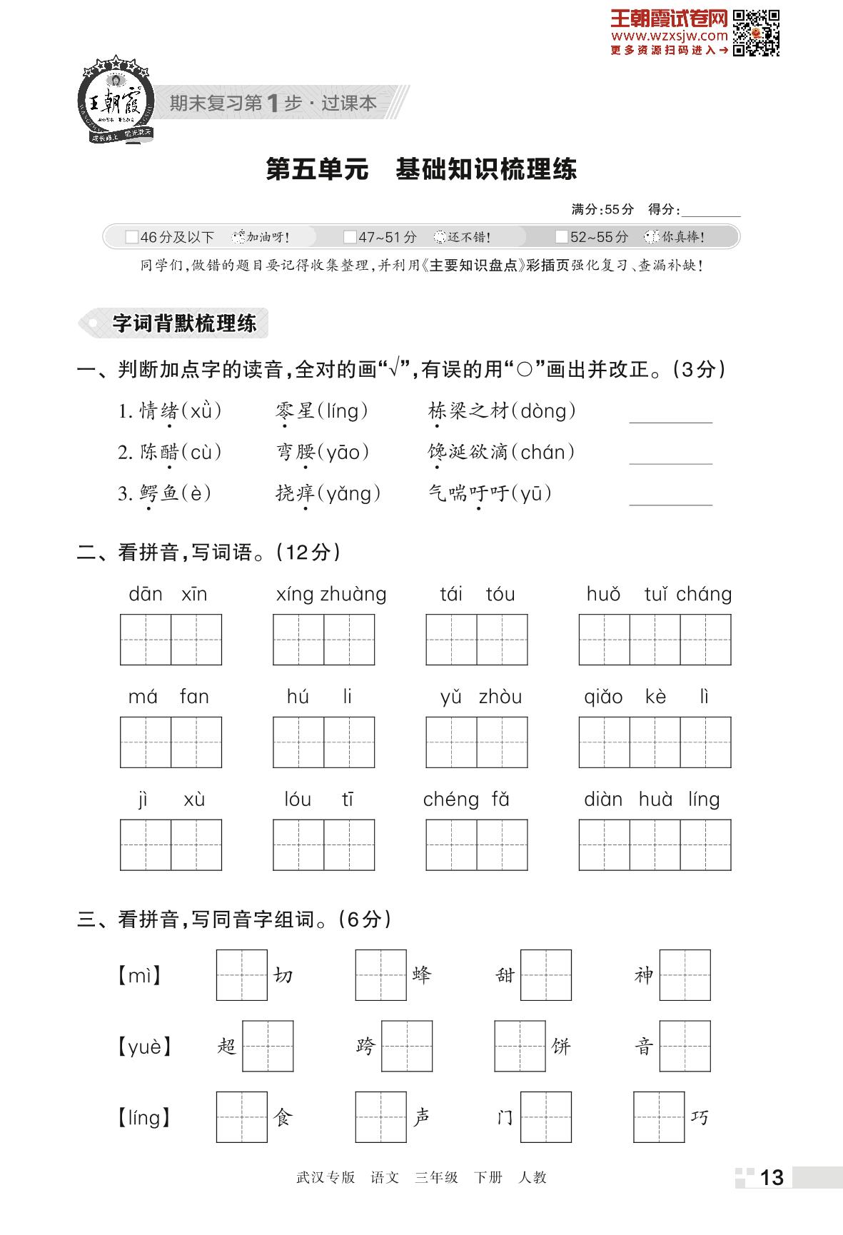 王朝霞期末过课本——第五单元 基础知识梳理练三年级下册语文(人教版)_R230420171722300