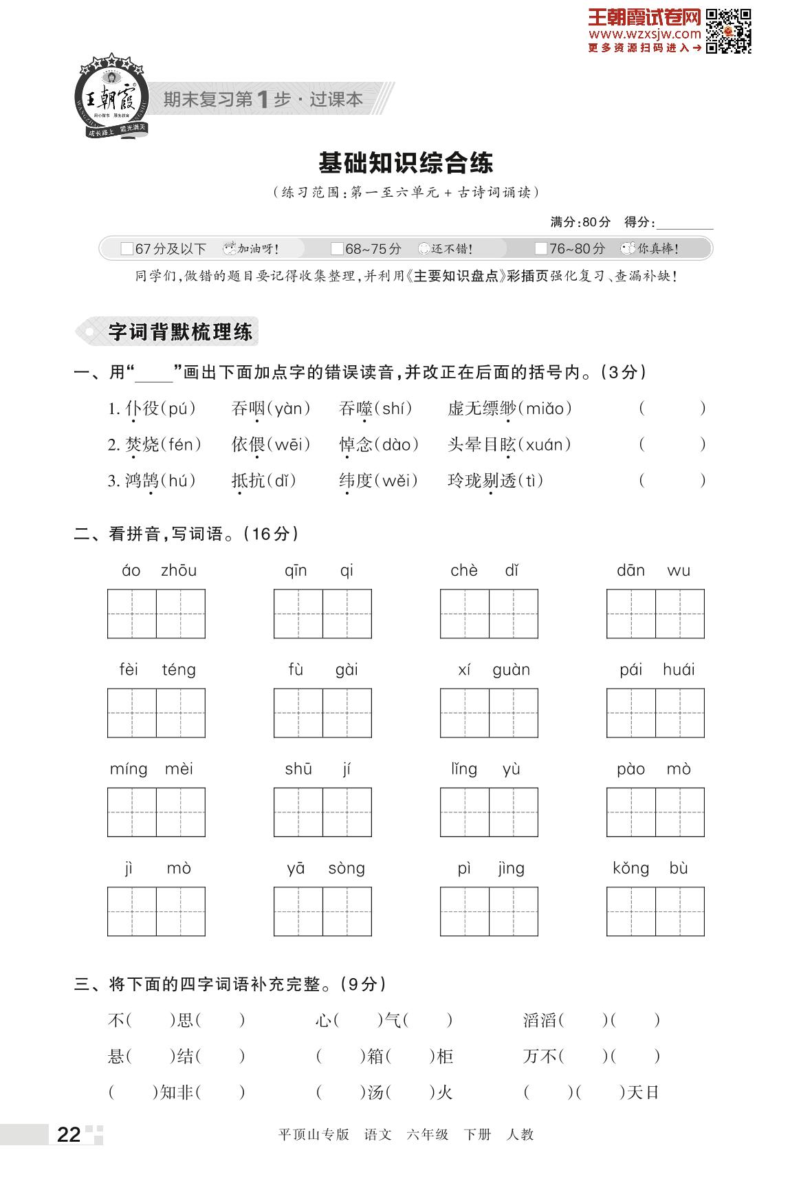 王朝霞期末过课本——基础知识综合练六年级下册语文(人教版)_R230420172128701