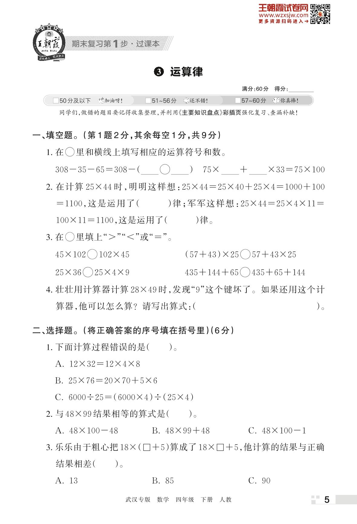 王朝霞期末过课本——3 运算律四年级下册数学(人教版)_R230420172548488