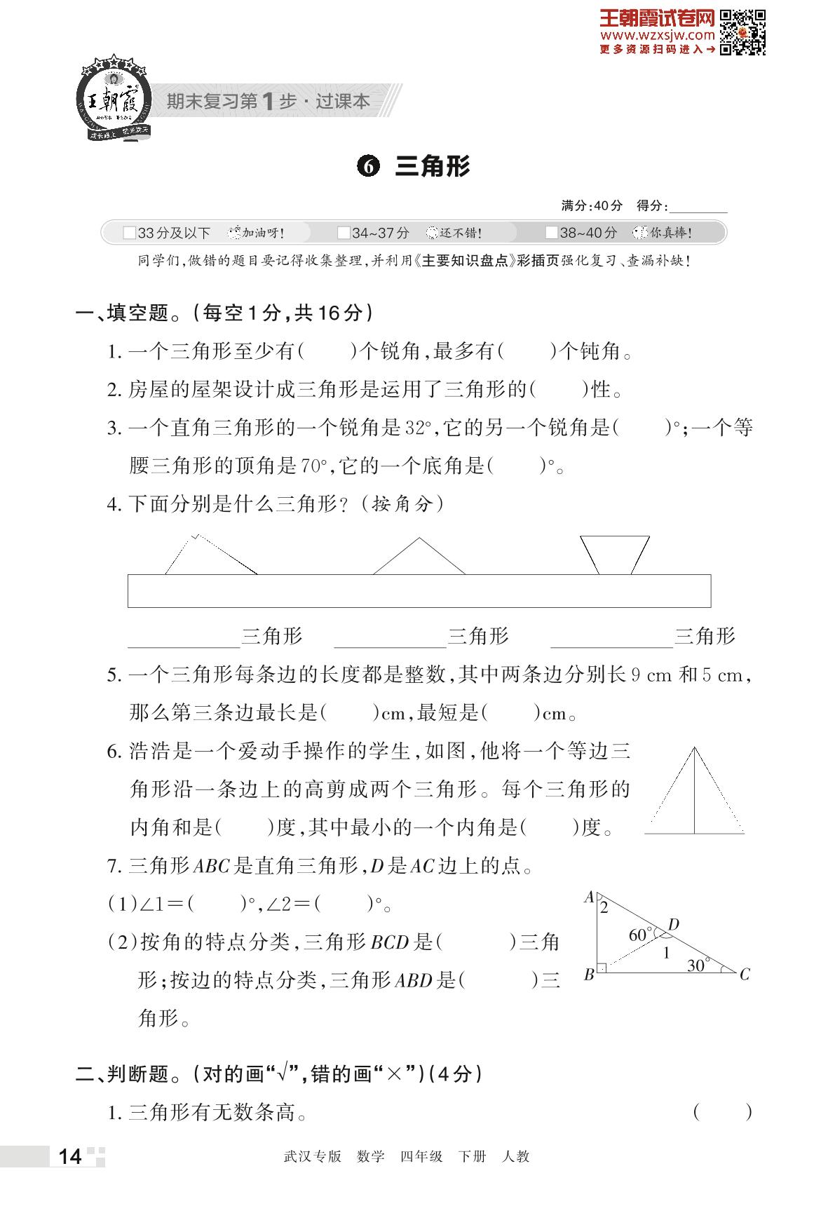 王朝霞期末过课本——6 三角形四年级下册数学(人教版)_R230420172548995