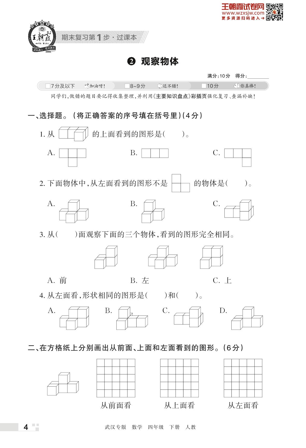 王朝霞期末过课本——2 观察物体四年级下册数学(人教版)_R230420172549154
