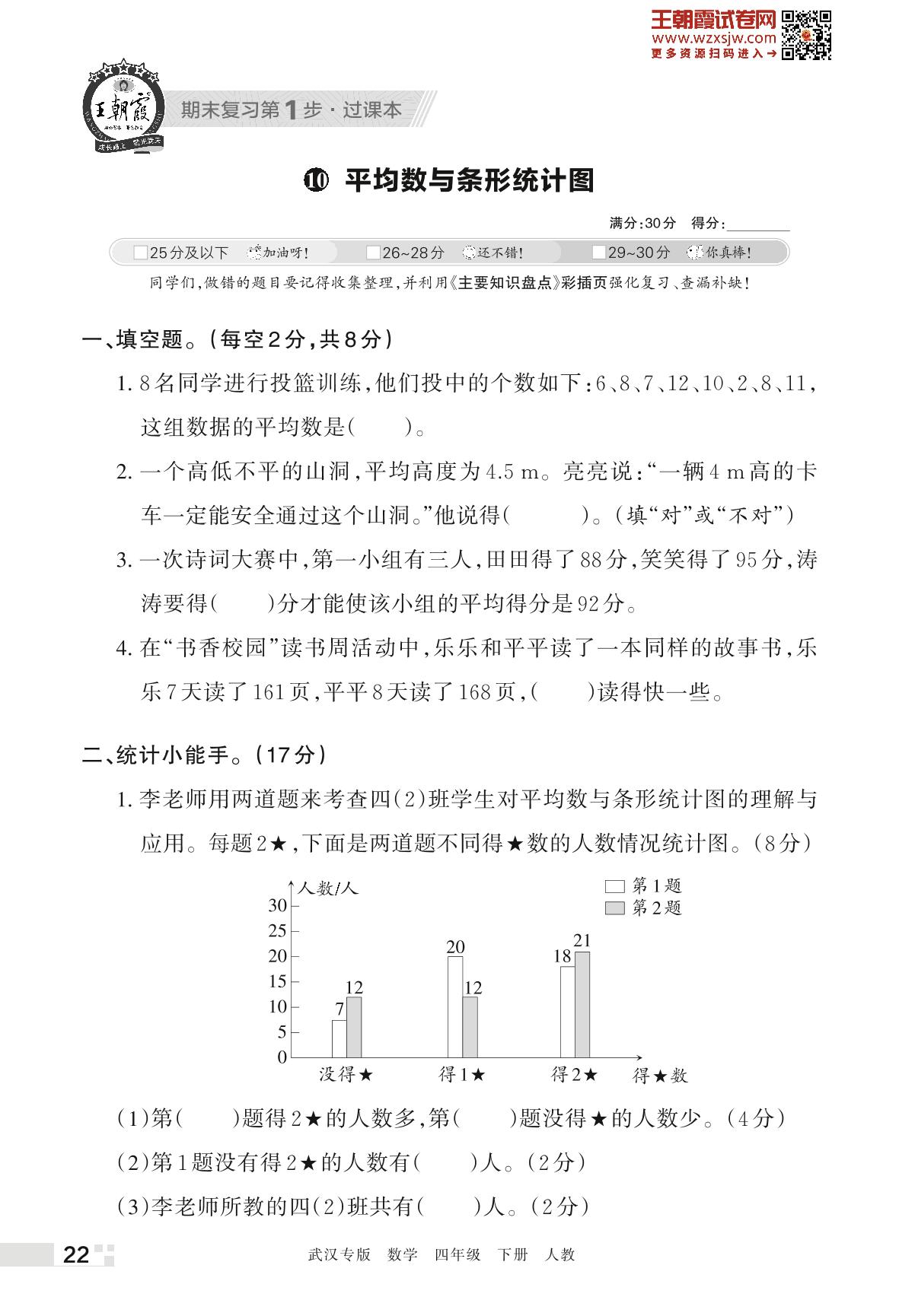 王朝霞期末过课本——10 平均数与条形统计图四年级下册数学(人教版)_R230420172549558