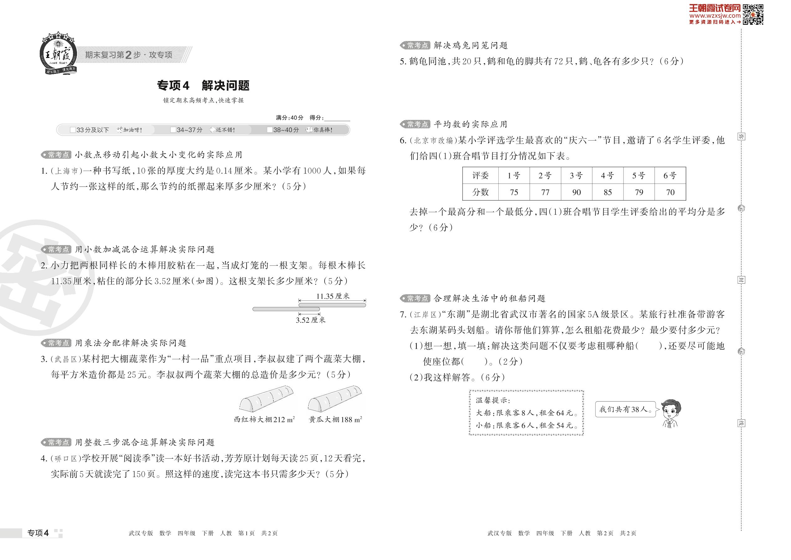 王朝霞期末专项卷——解决问题四年级下册数学(人教版)_R230420172549635【4】