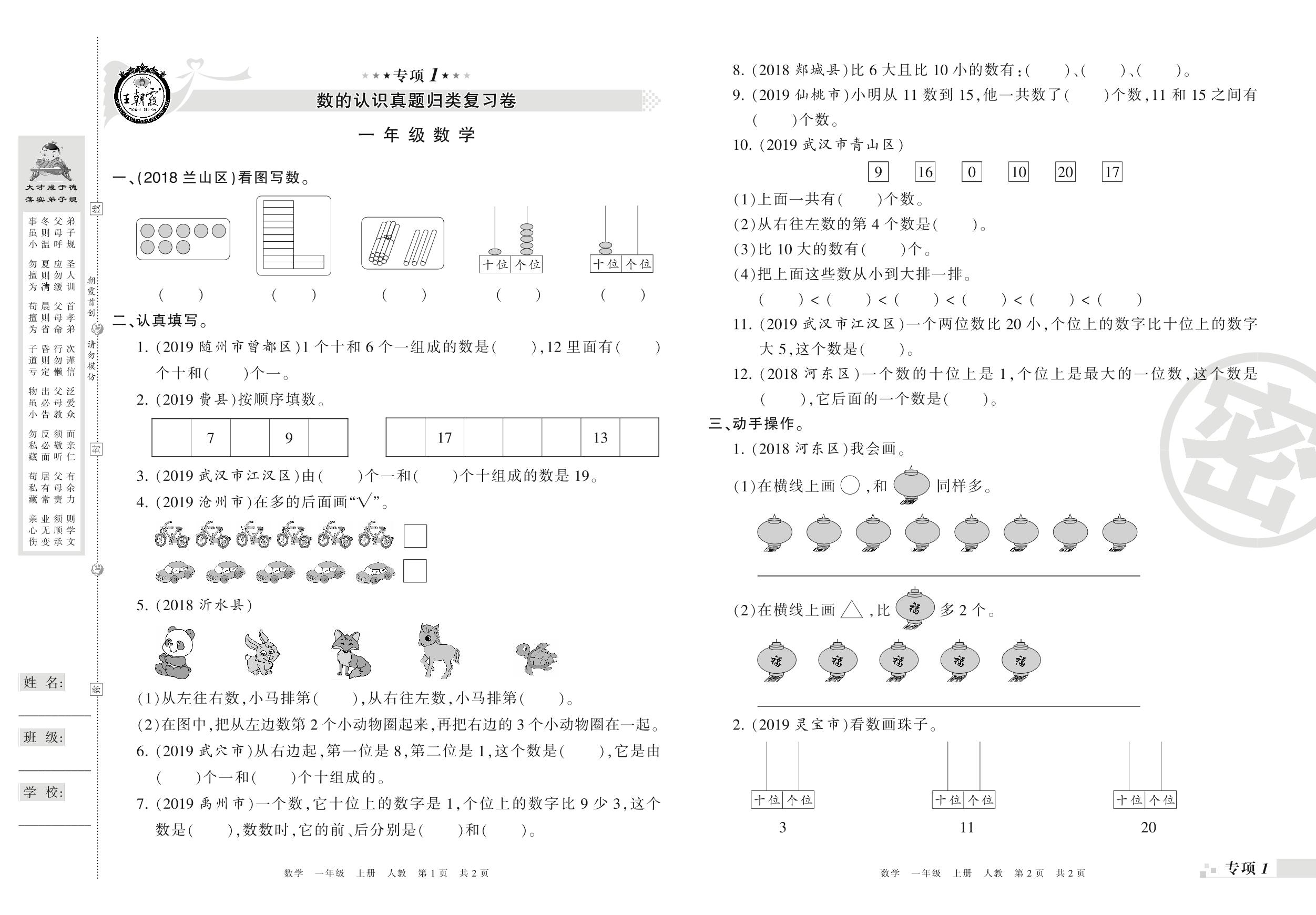 王朝霞期末专项卷——数的认识、计算真题归类复习一年级上册数学(人教版)_R210802215049【0】