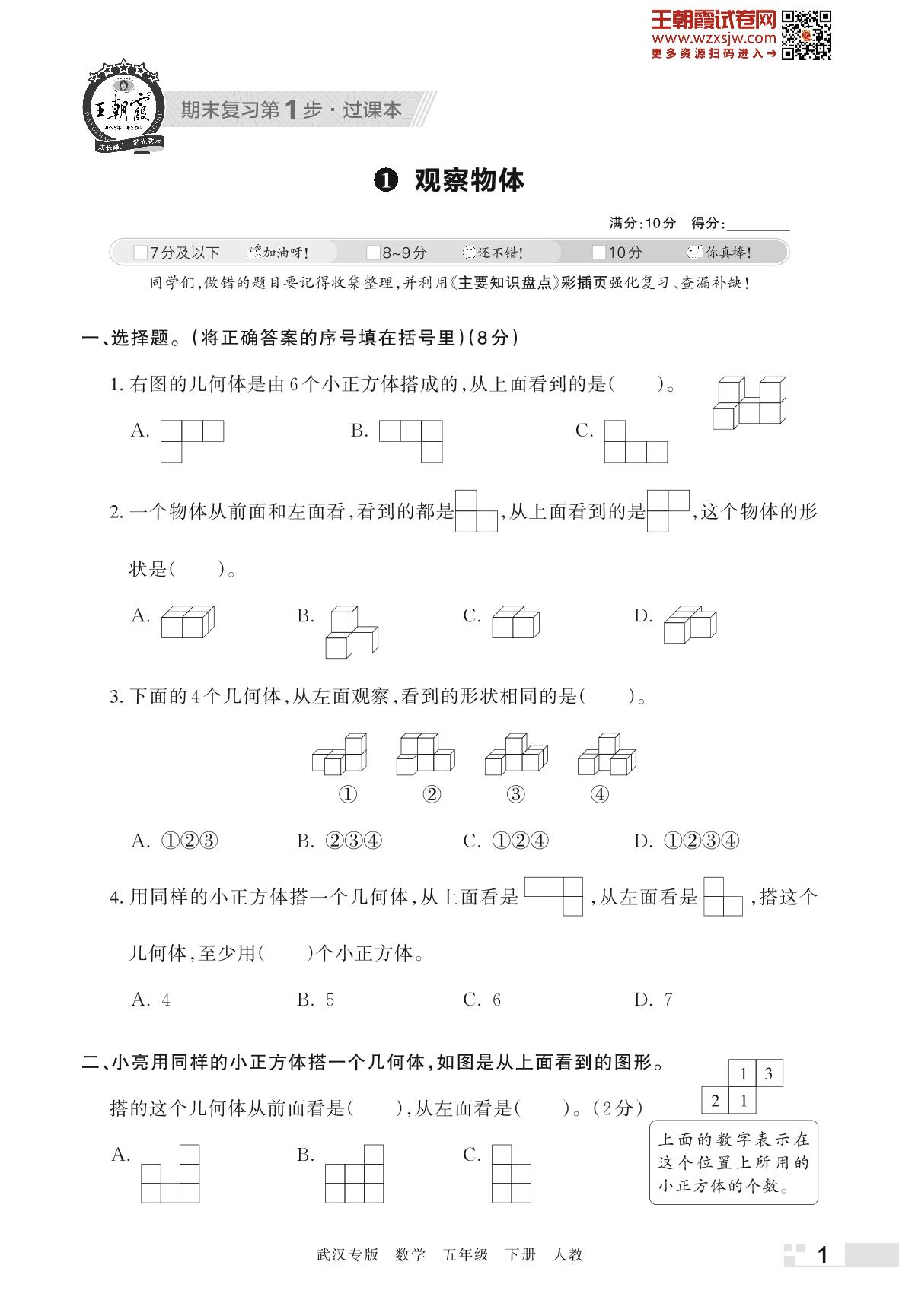 王朝霞期末过课本——1 观察物体五年级下册数学(人教版)_R230420173732556
