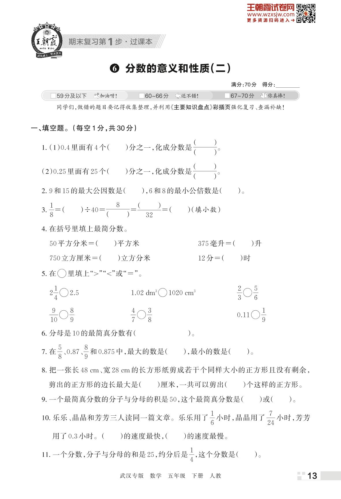 王朝霞期末过课本——6 分数的意义和性质(二)五年级下册数学(人教版)_R230420173732907