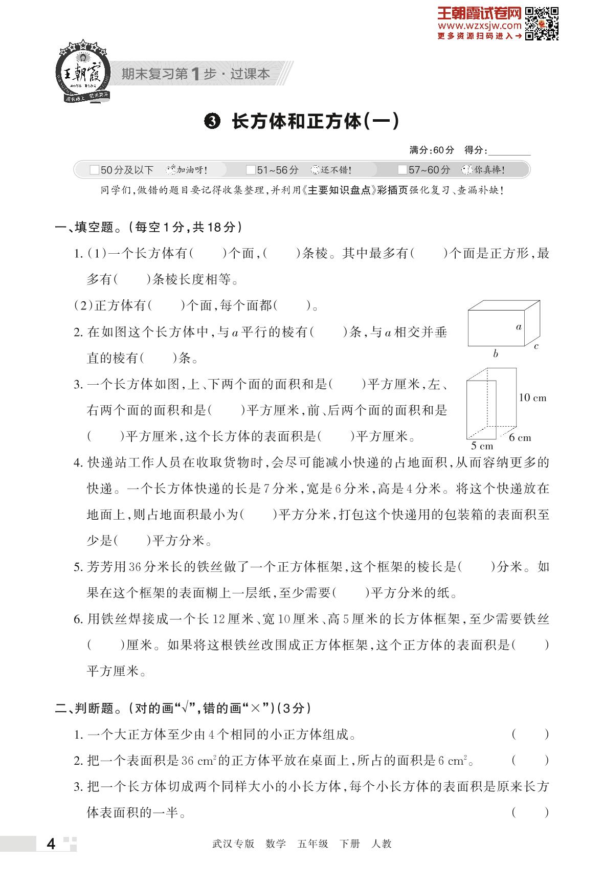 王朝霞期末过课本——3 长方体和正方体(一)五年级下册数学(人教版)_R230420173732227