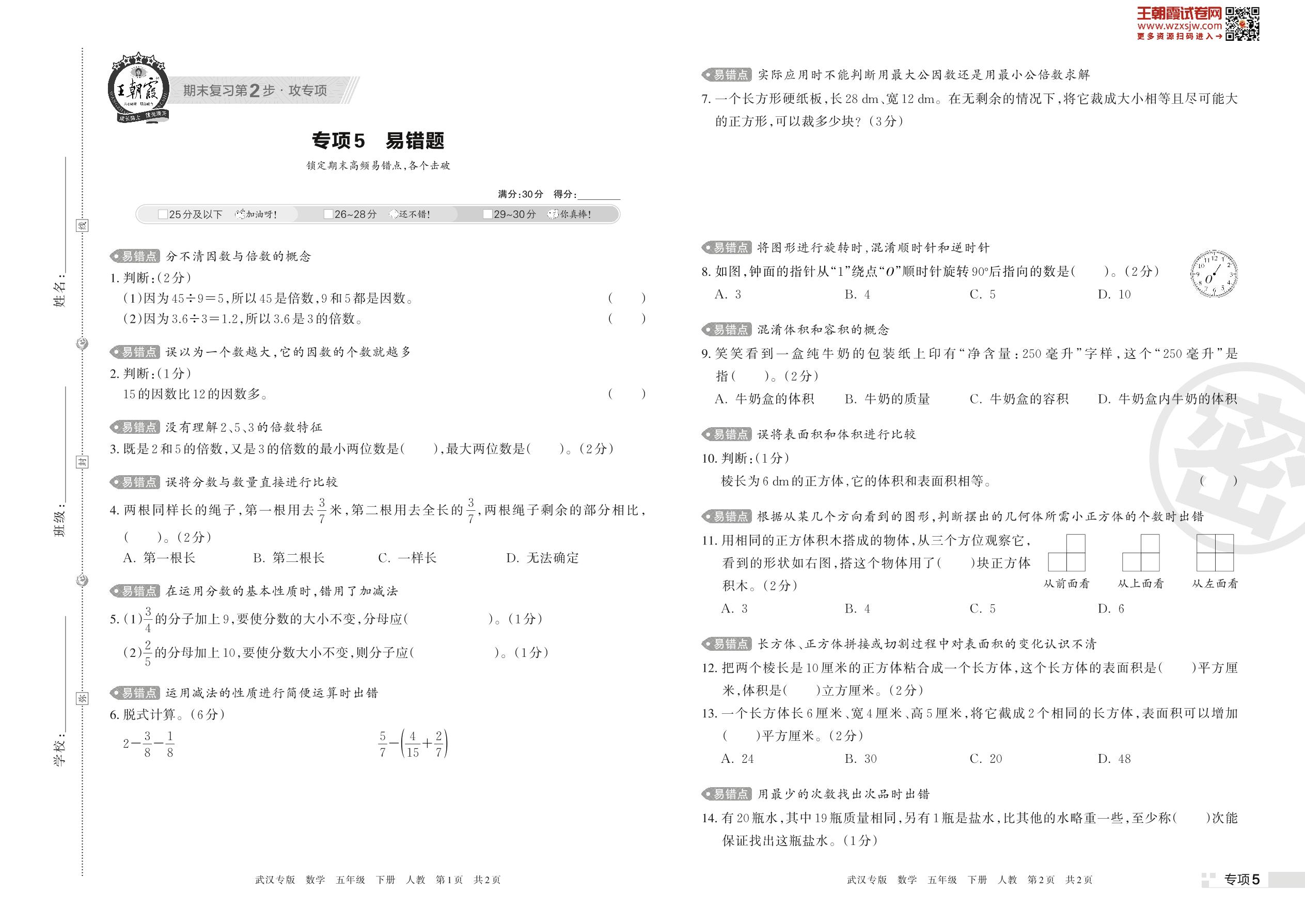 王朝霞期末专项卷——易错题五年级下册数学(人教版)_R230420173733173【5】