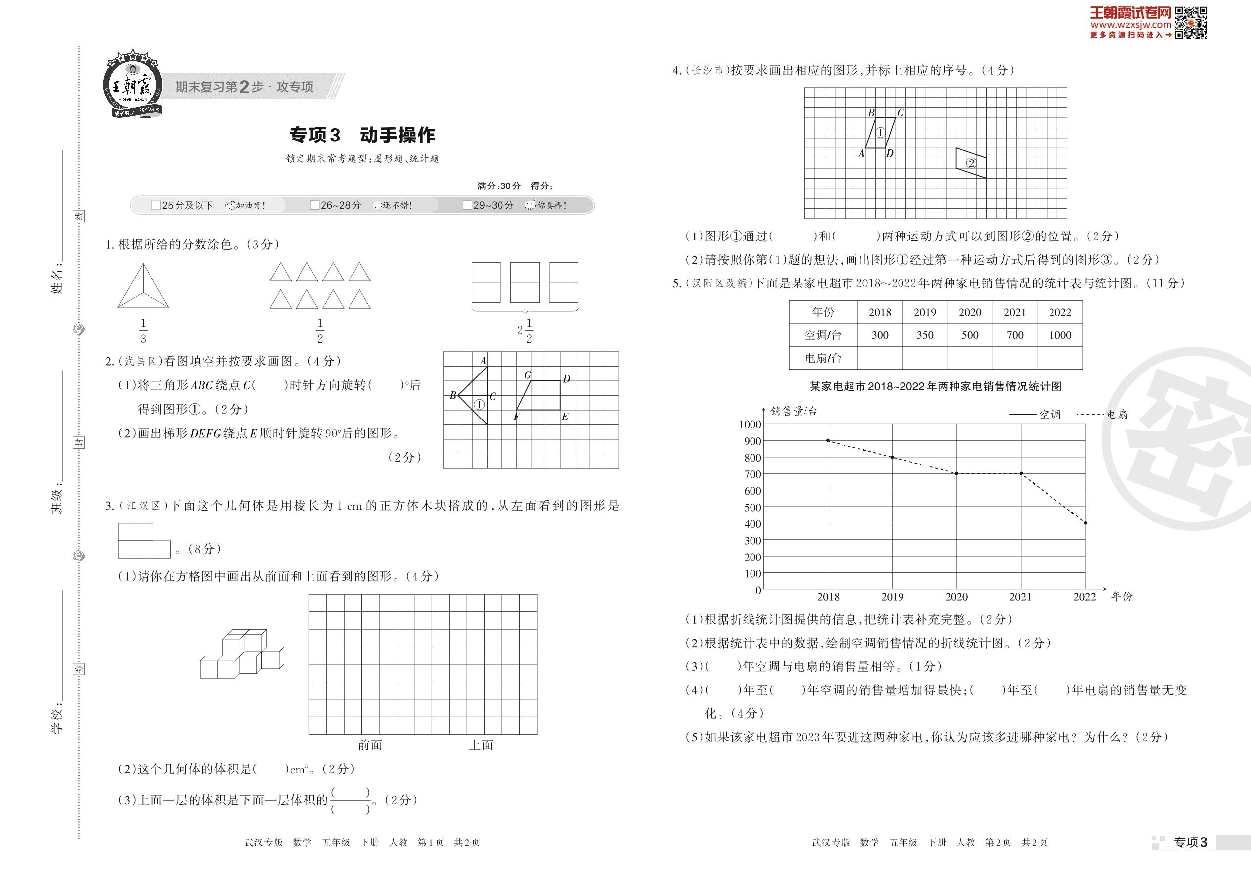 王朝霞期末专项卷——动手操作五年级下册数学(人教版)_R230420173733030【3】