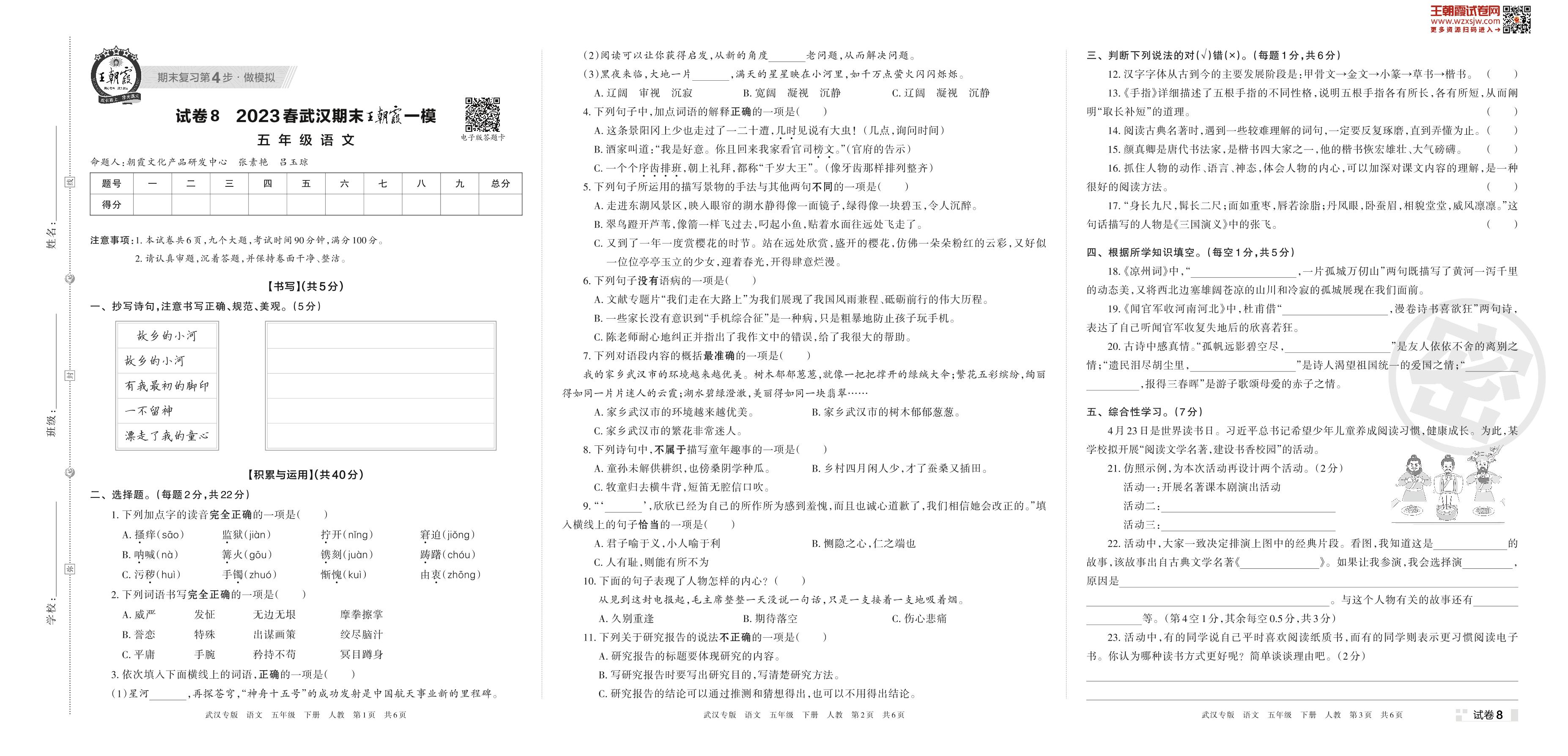 王朝霞期末模拟卷五年级下册语文(人教版)_R230421092154730【8】