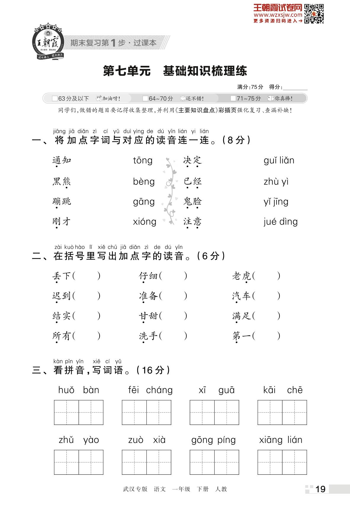 王朝霞期末过课本——第七单元 基础知识梳理练一年级下册语文(人教版)_R230421092814715