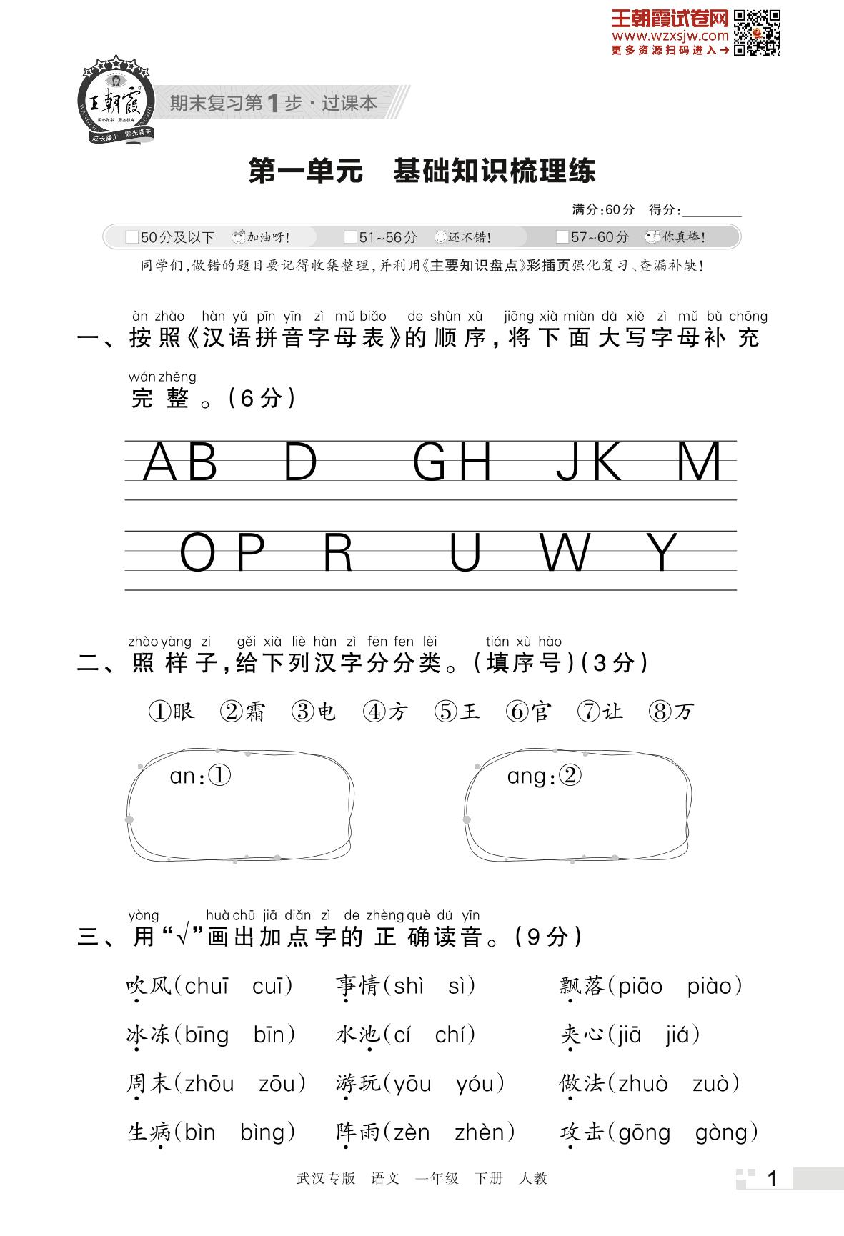 王朝霞期末过课本——第一单元 基础知识梳理练一年级下册语文(人教版)_R230421092814837