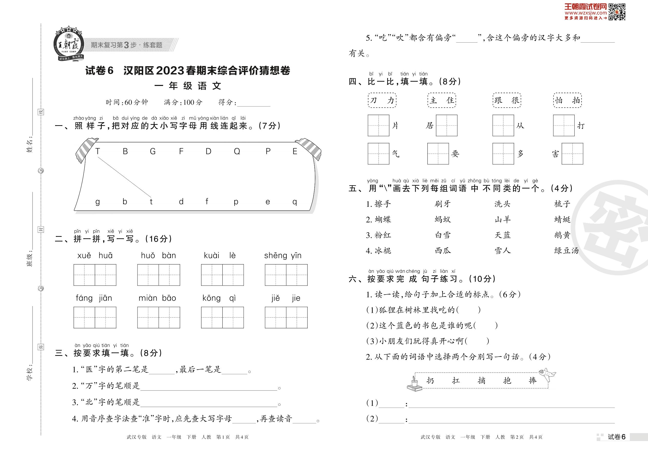 一年级语文人教版下册期末卷