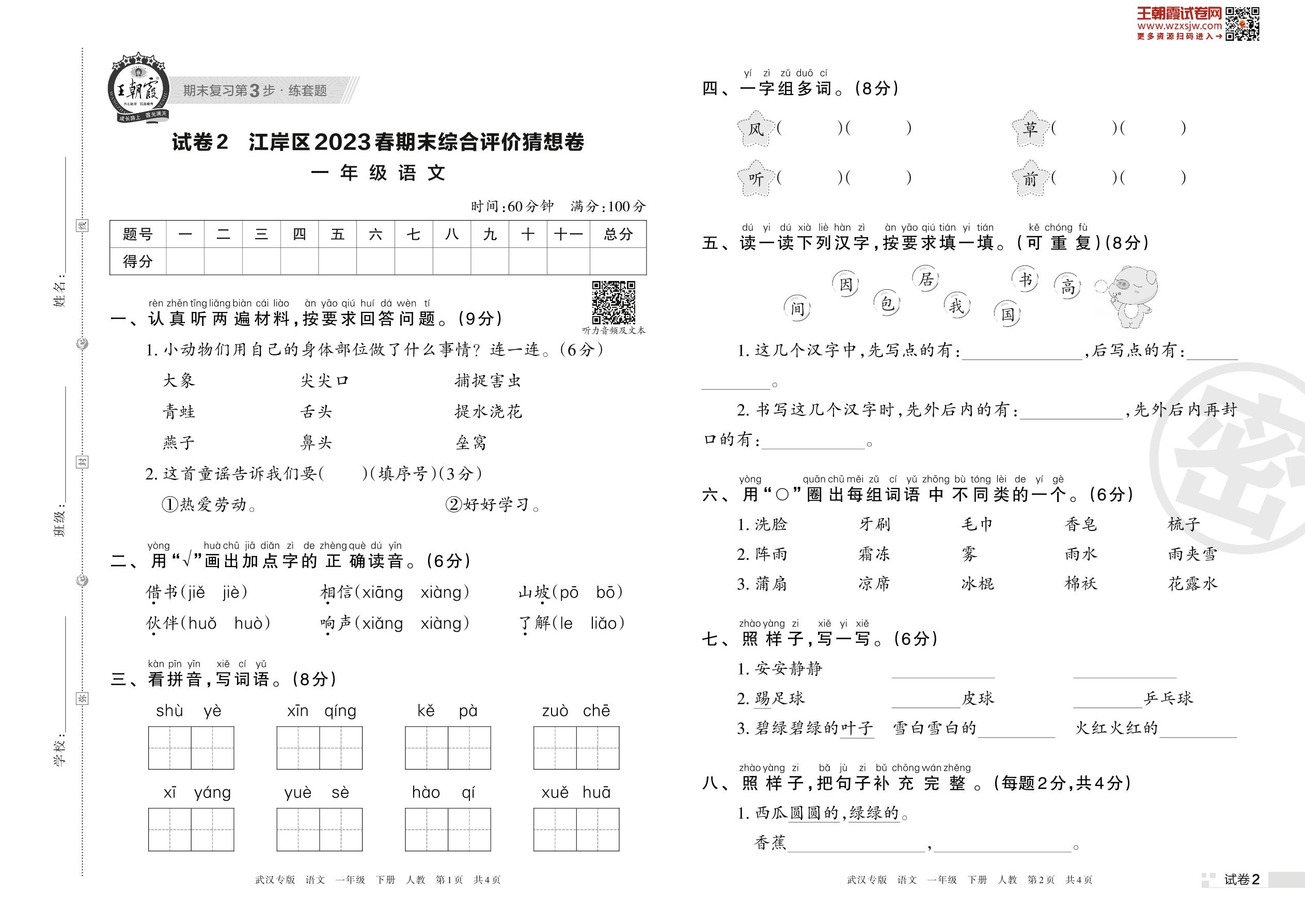江岸区2023春期末综合评价猜想卷一年级语文(人教版)【2】