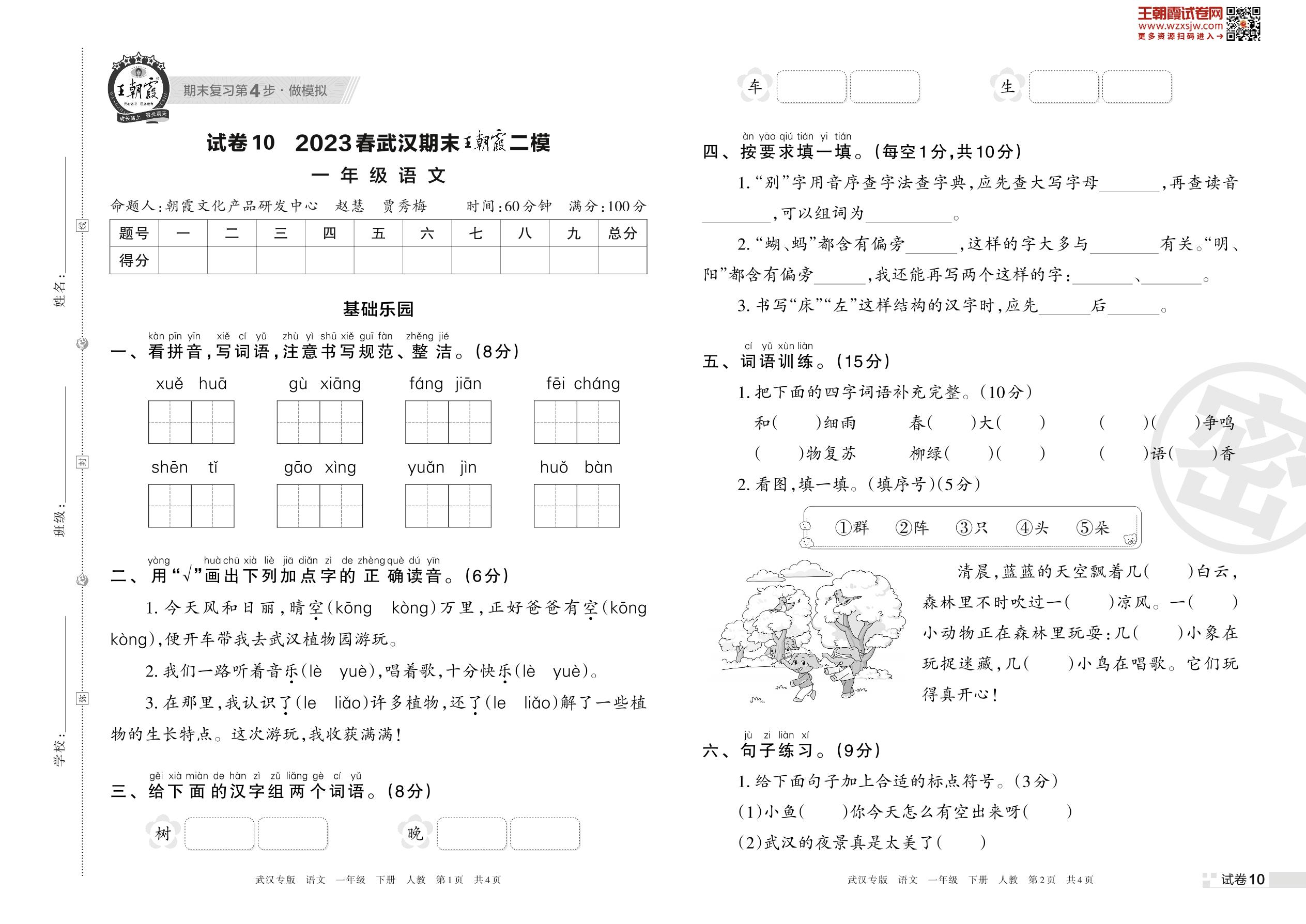 王朝霞期末模拟卷一年级下册语文(人教版)_R230421092816702【10】