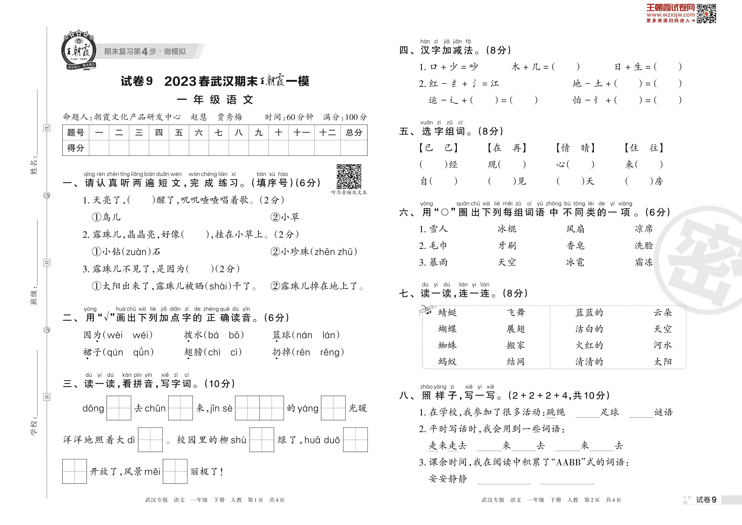 王朝霞期末模拟卷一年级下册语文(人教版)_R230421092816874【9】