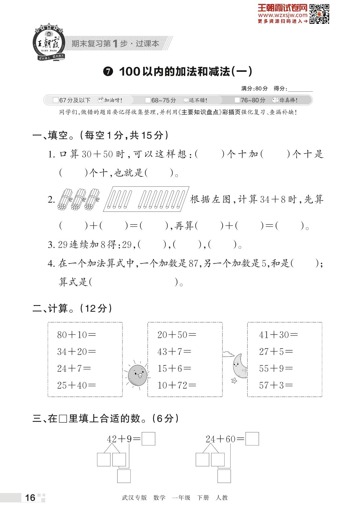 王朝霞期末过课本——7 100以内的加法和减法(一)一年级下册数学(人教版)_R230421093507848