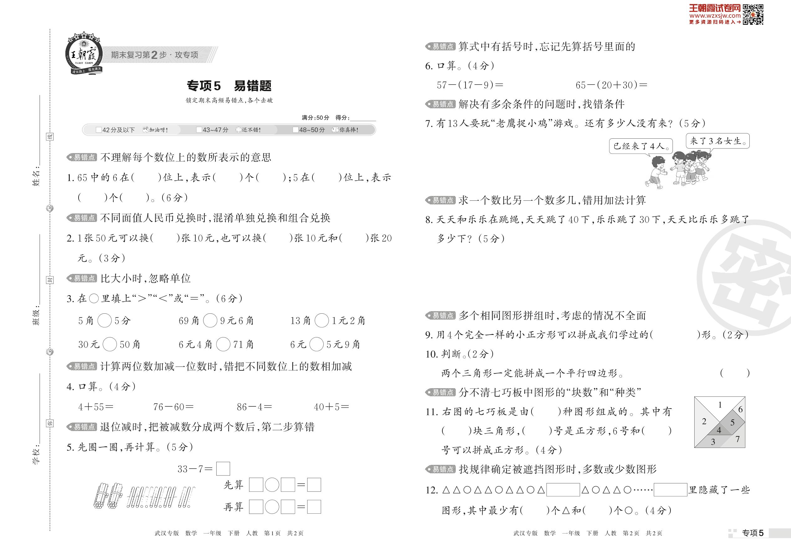 王朝霞期末专项卷——易错题一年级下册数学(人教版)_R230421093508915【5】