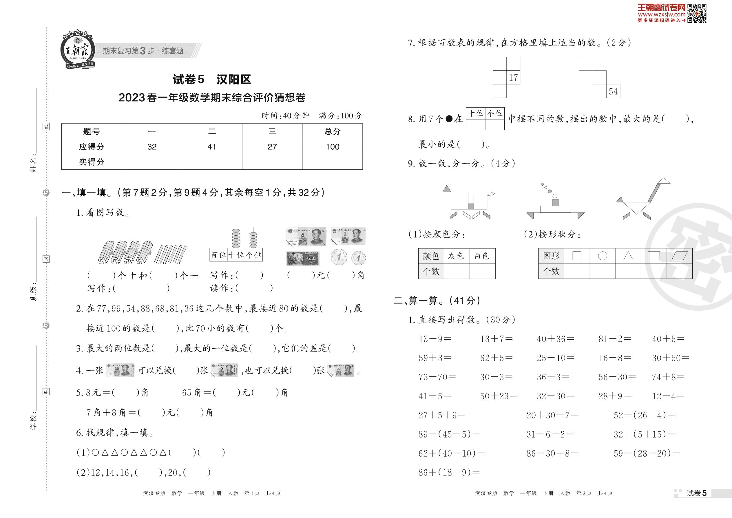 汉阳区2023春一年级数学期末综合评价猜想卷(人教版)【5】