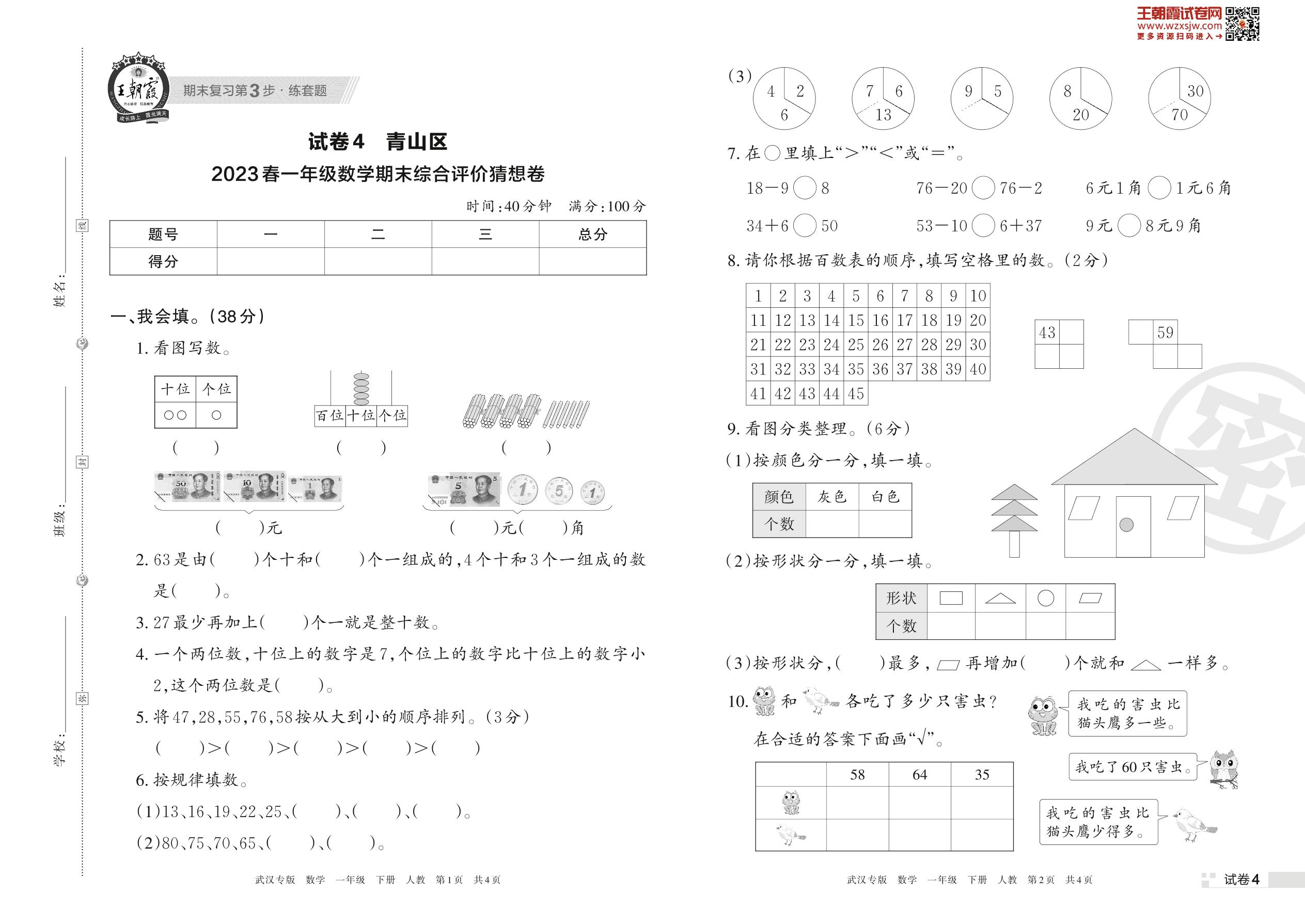 青山区2023春一年级数学期末综合评价猜想卷(人教版)【4】