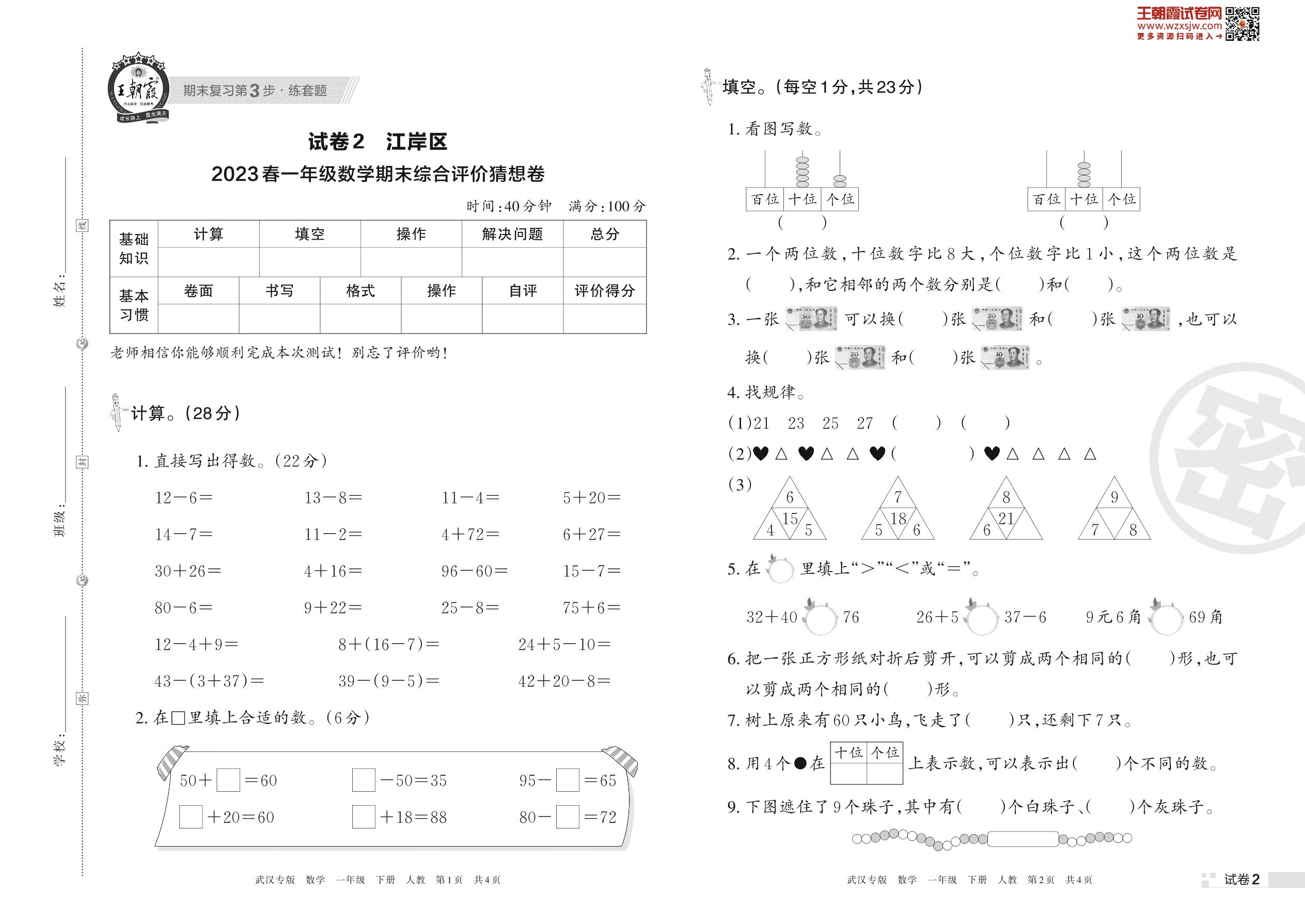 江岸区2023春一年级数学期末综合评价猜想卷(人教版)【2】