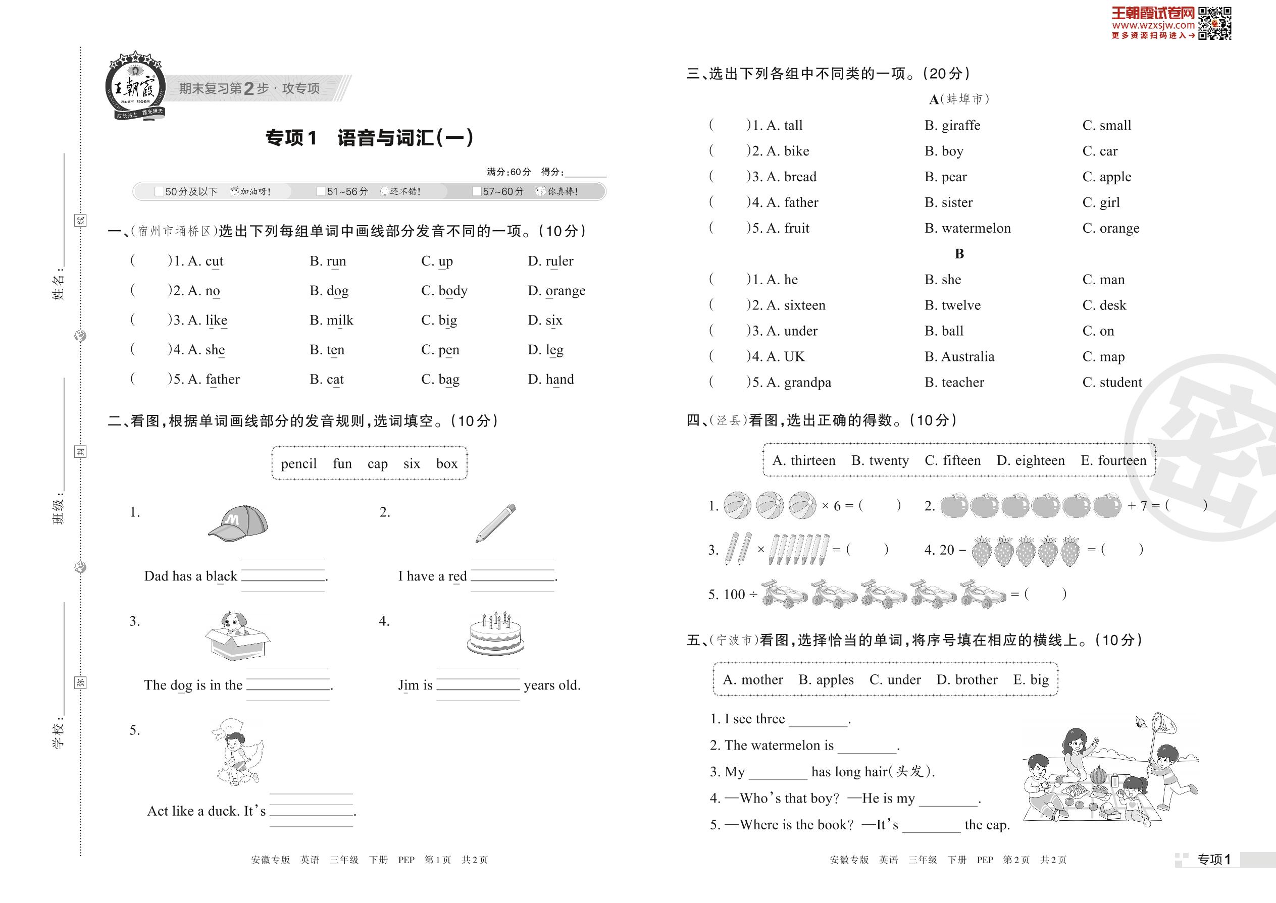 王朝霞期末专项卷——语音与词汇(一)三年级下册英语(PEP版)【1】