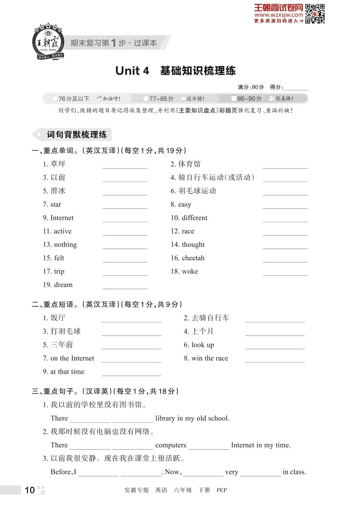 王朝霞期末过课本——Unit 4 基础知识梳理练六年级下册英语(PEP版)_R230421104959088