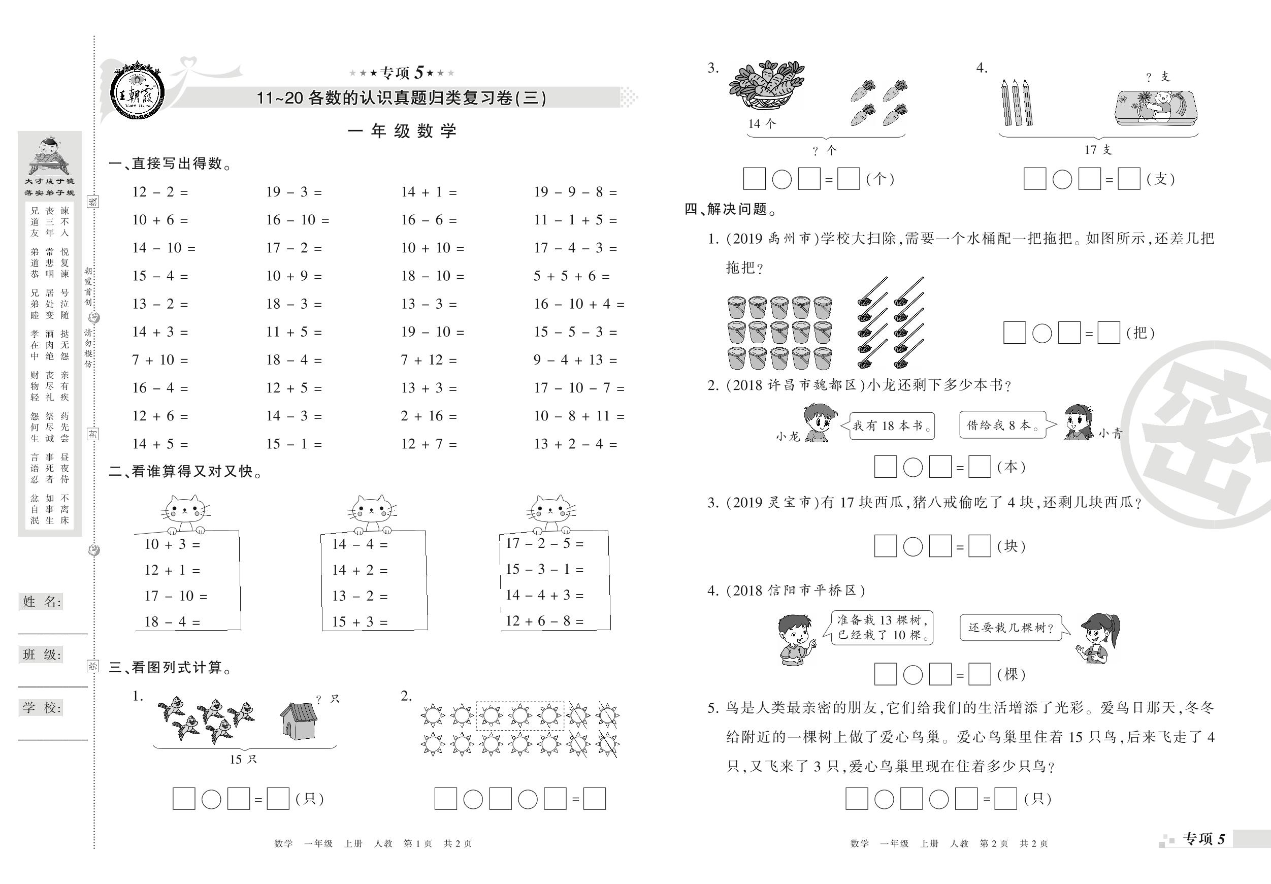 王朝霞期末专项卷——1~20各数的认识、20以内的进位加法一年级上册数学(人教版)_R210802215134【0】