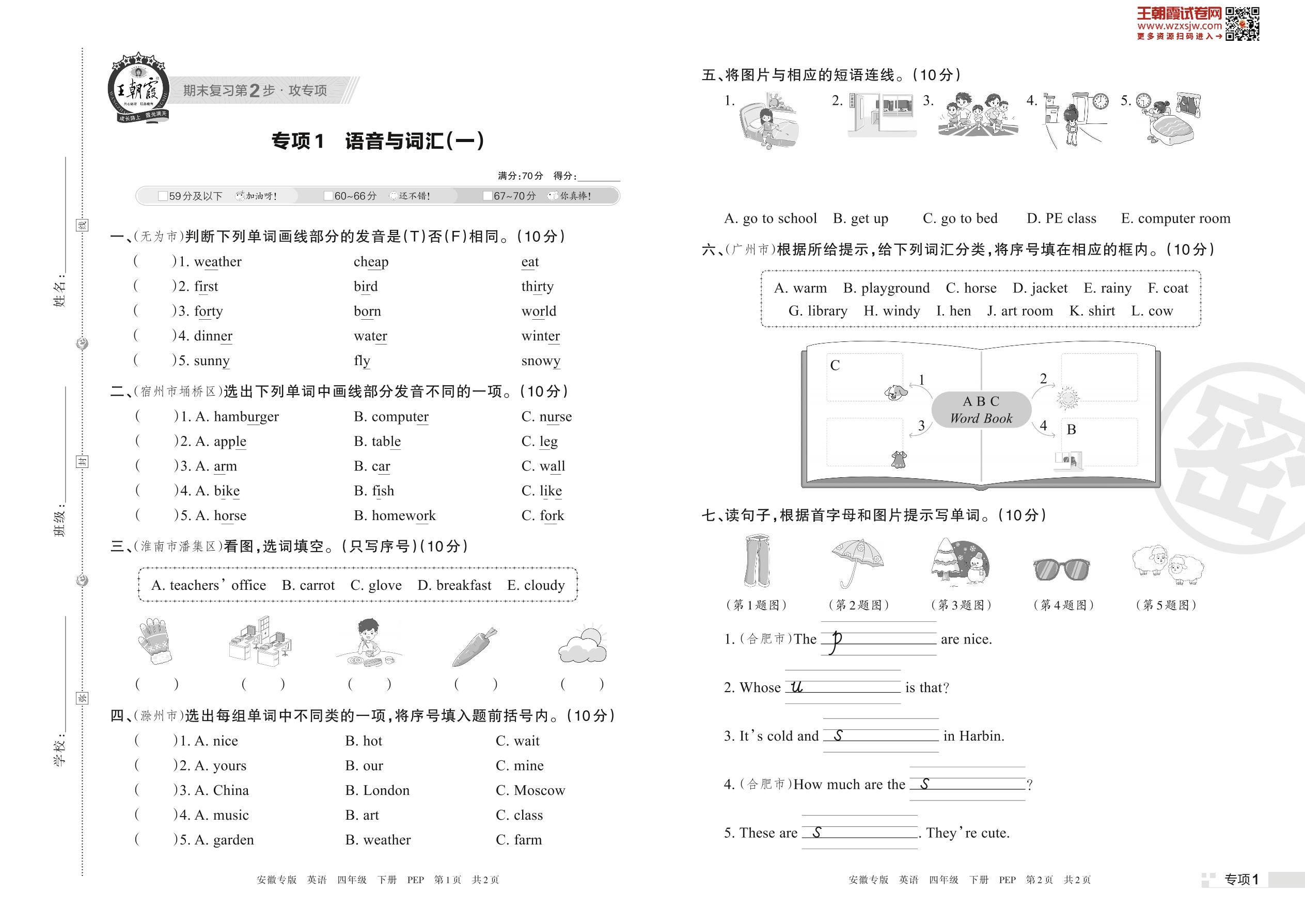 王朝霞期末专项卷——语音与词汇(一)四年级下册英语(PEP版)【1】