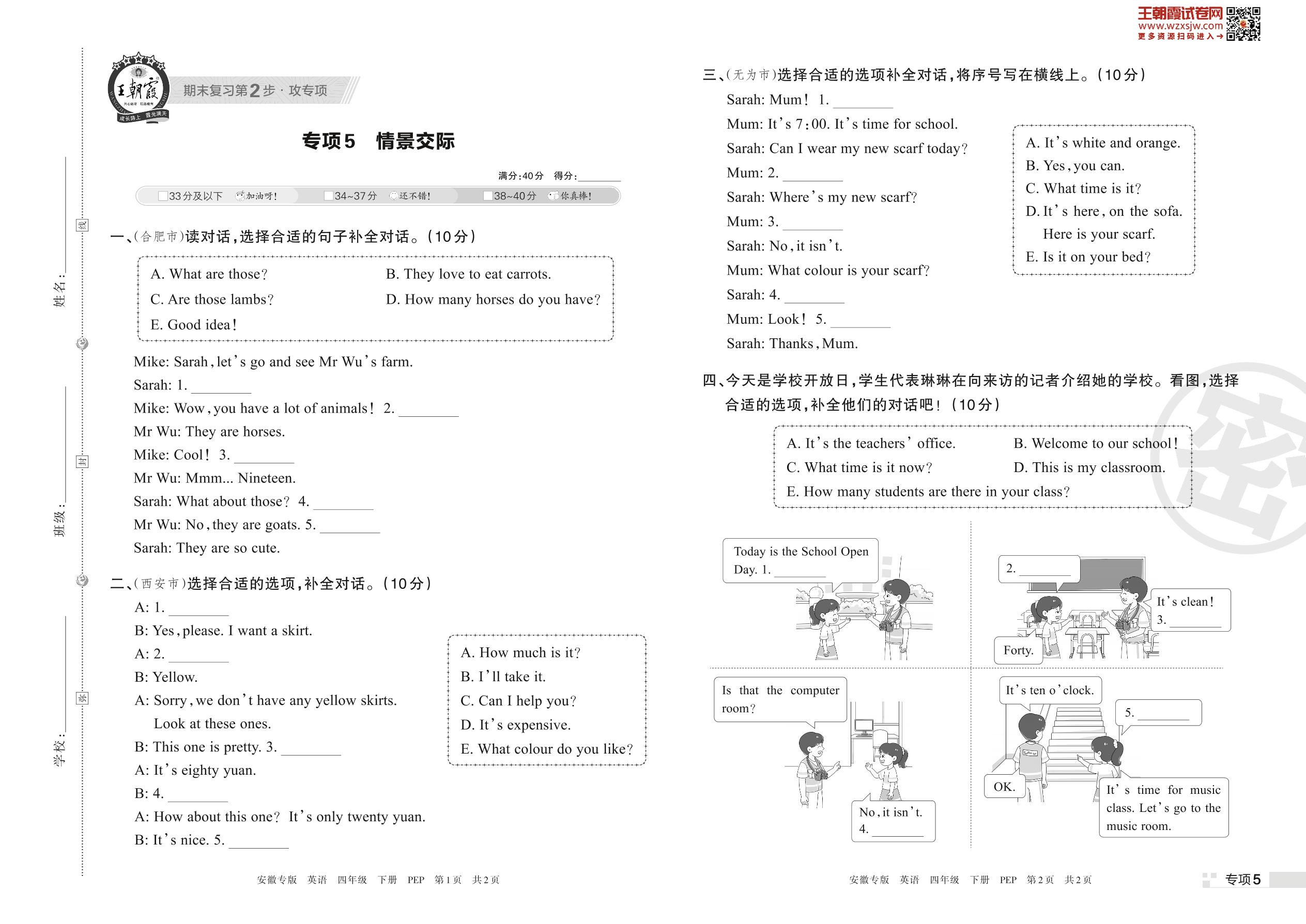 王朝霞期末专项卷——情景交际四年级下册英语(PEP版)【5】