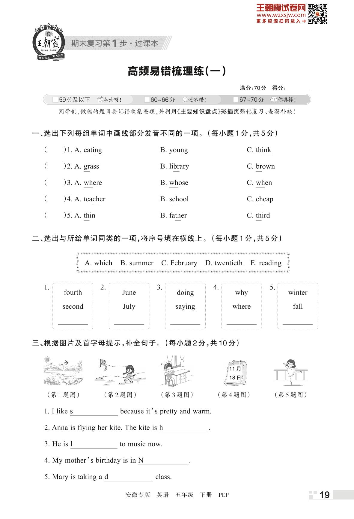 王朝霞期末过课本——高频易错梳理练(一)五年级下册英语(PEP版)_R230421111858474