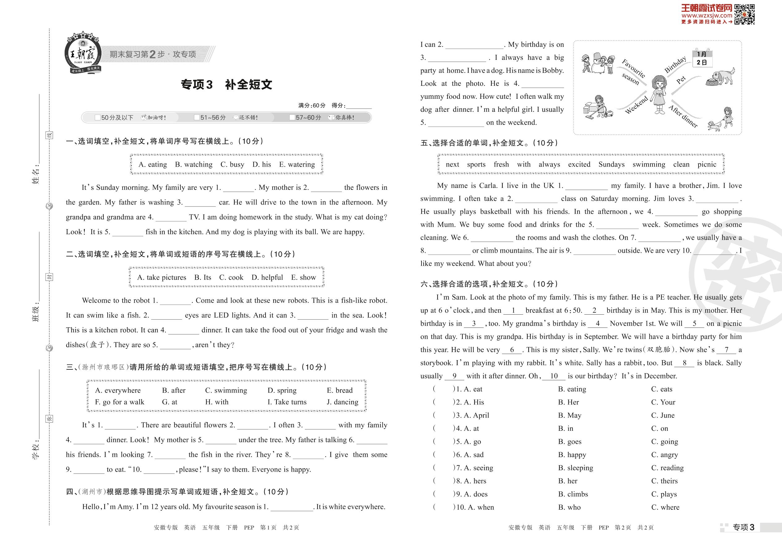 王朝霞期末专项卷——补全短文五年级下册英语(PEP版)_R230421111859743【3】