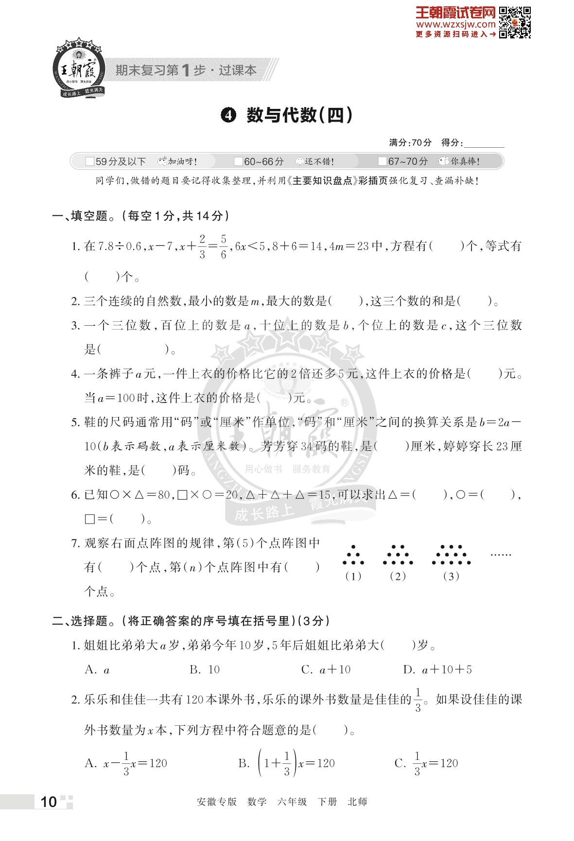 王朝霞期末过课本——4 数与代数(四)六年级下册数学(北师版)_R230421115656203