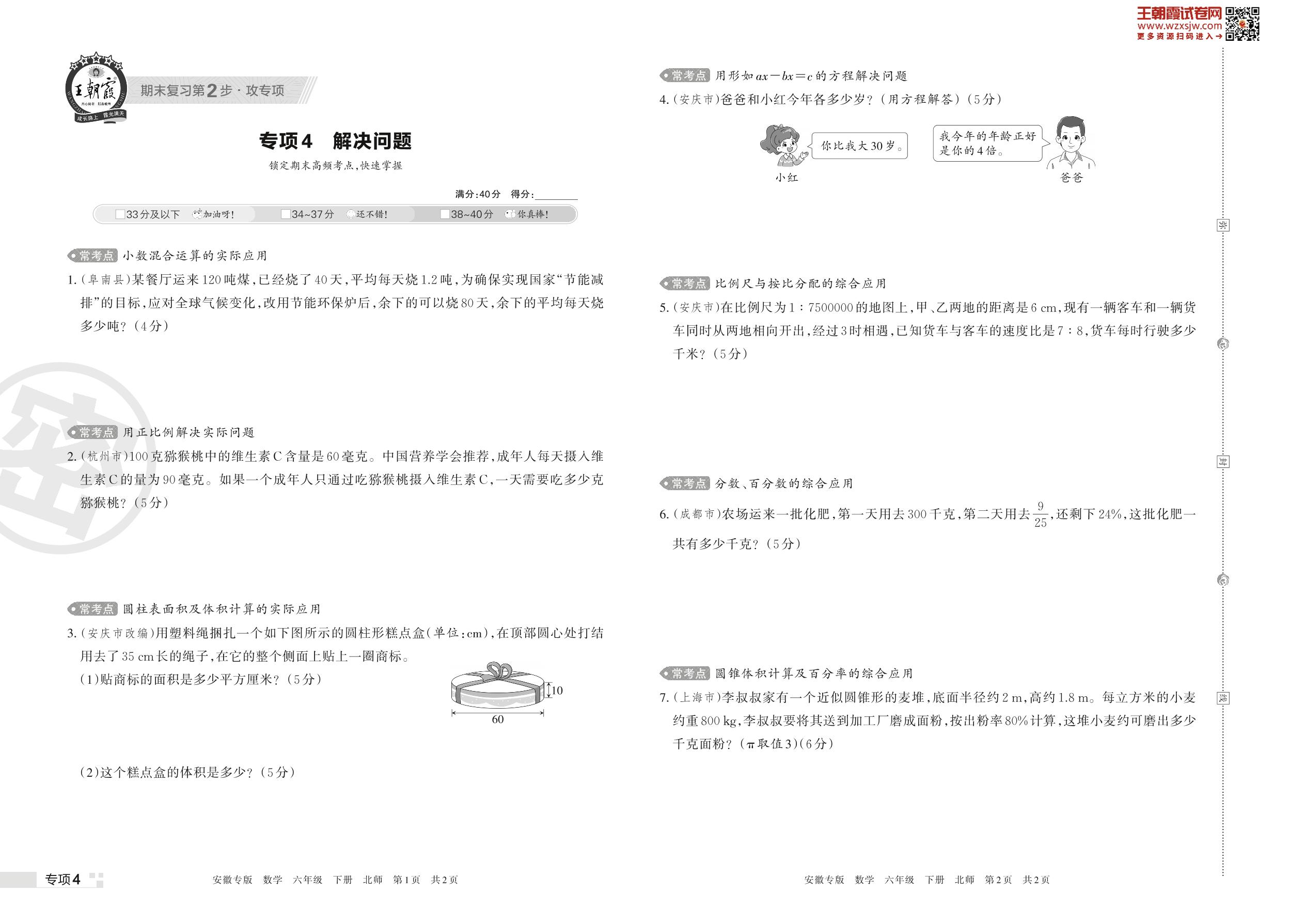 王朝霞期末专项卷——解决问题六年级下册数学(北师版)_R230421115657201【4】