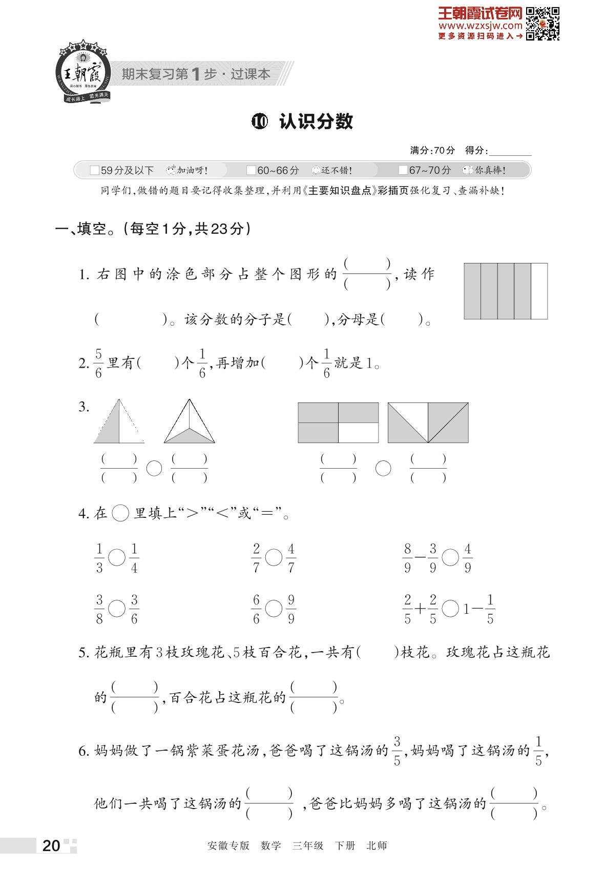 王朝霞期末过课本——10 认识分数三年级下册数学(北师版)