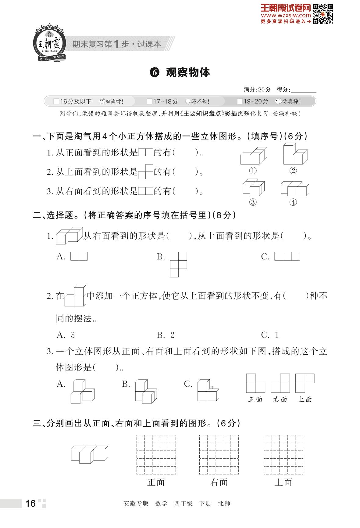 王朝霞期末过课本——6 观察物体四年级下册数学(北师版)_R230421135211674